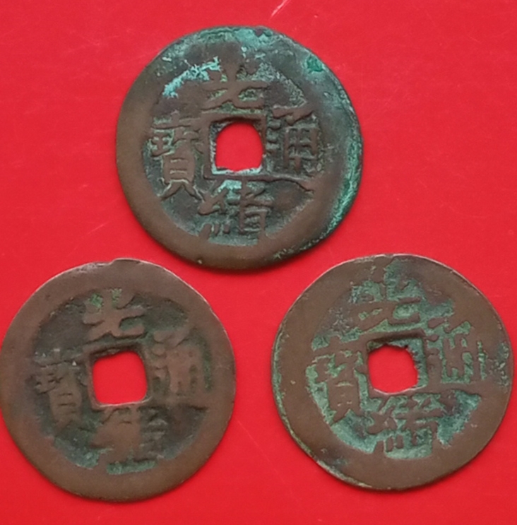 -- 新疆红钱光绪通宝喀十(三)枚