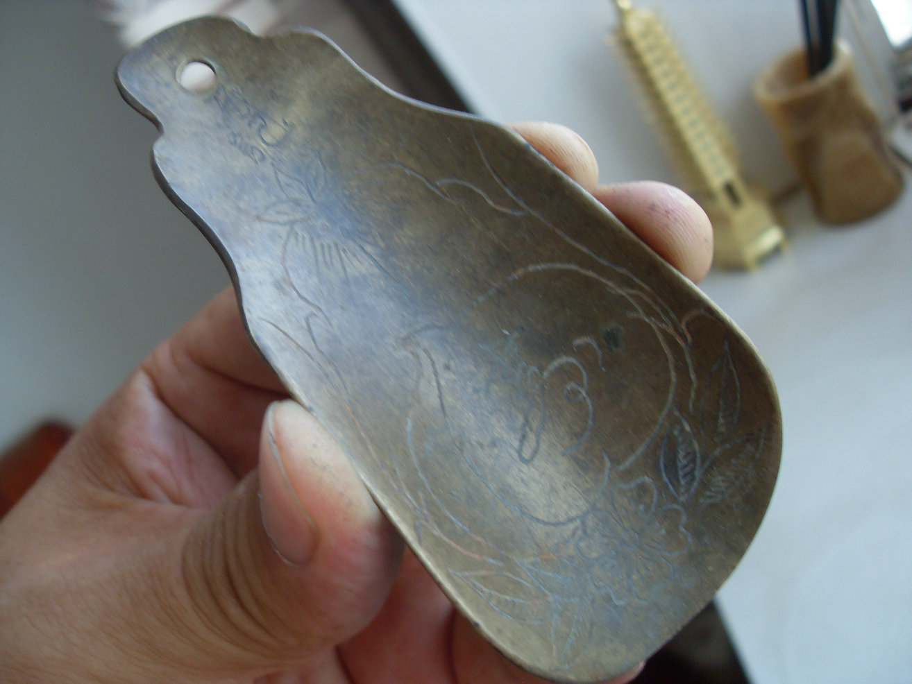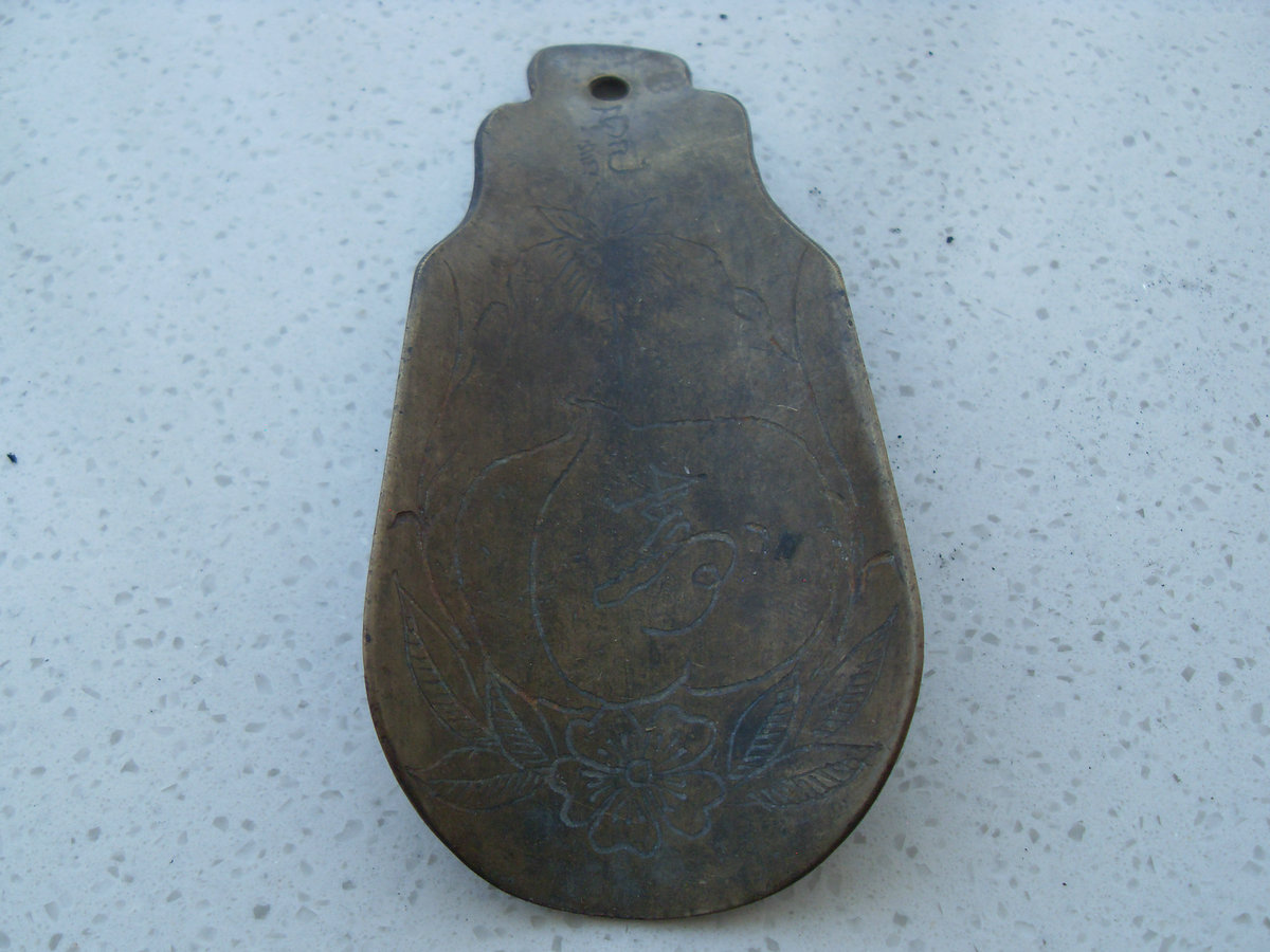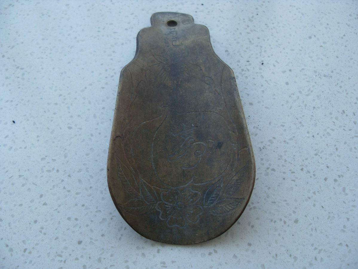 -- 不多见的民国祝寿【寿桃寿字】老铜鞋拔!!