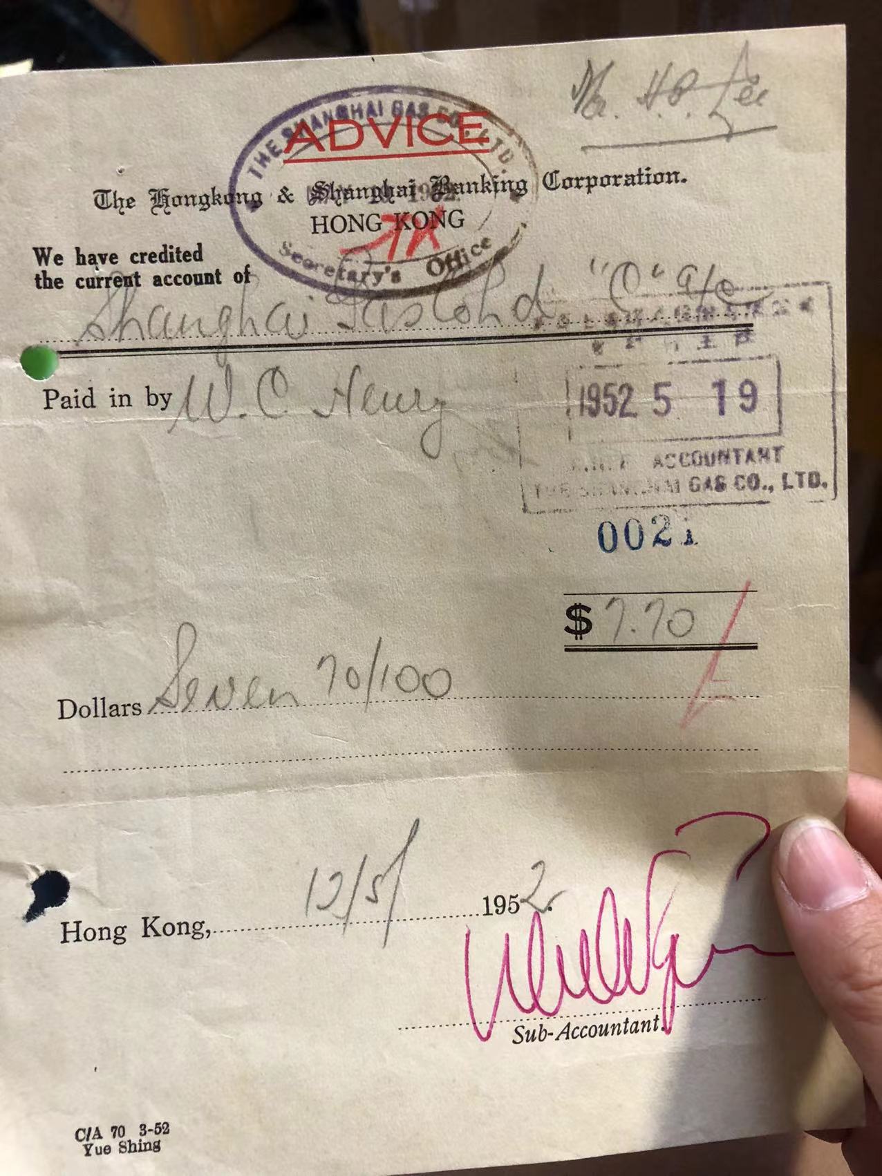 → 50年代 一张英文纸张