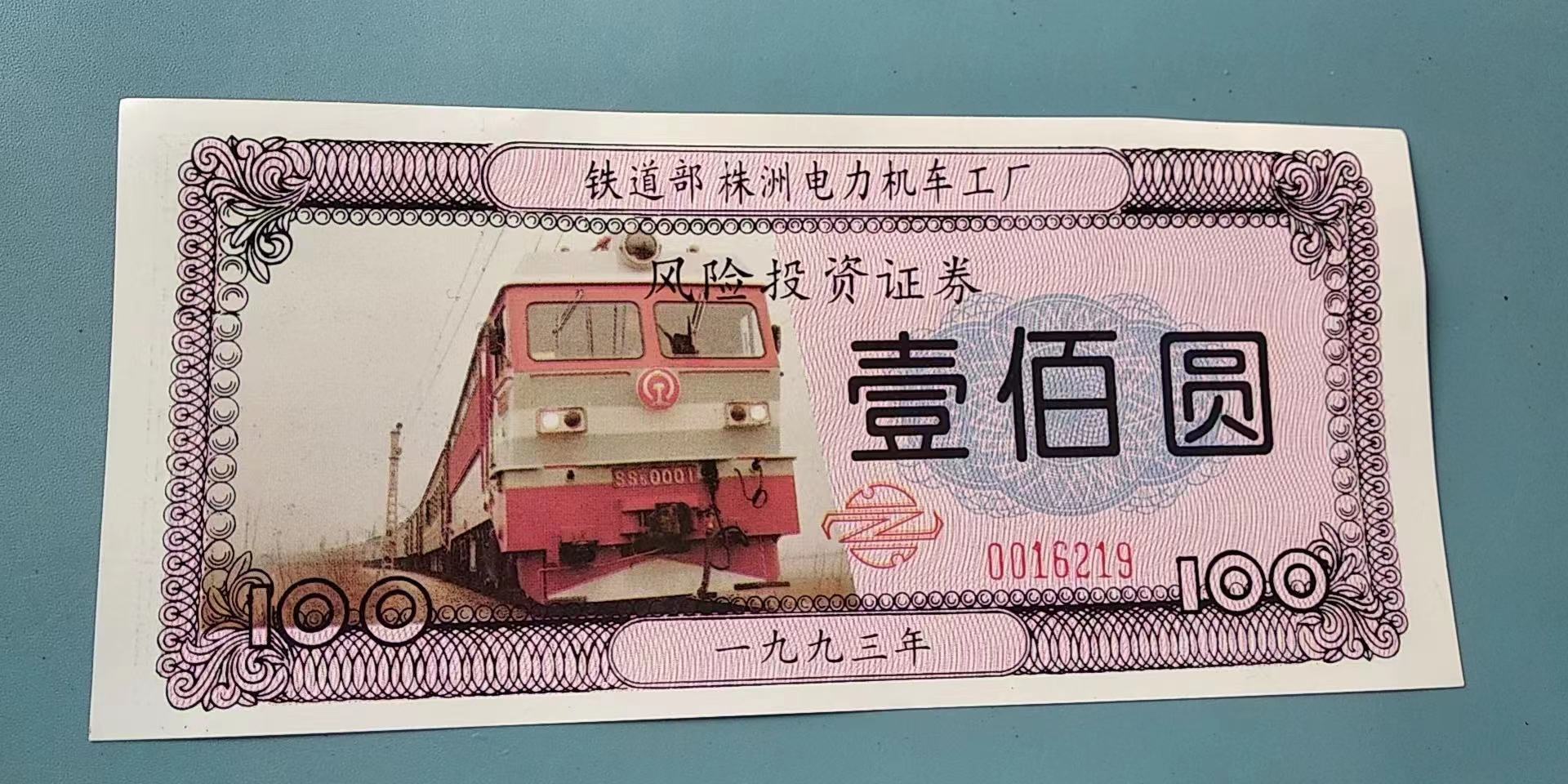 → 铁道部株洲电力机车工厂风险投资证券100元