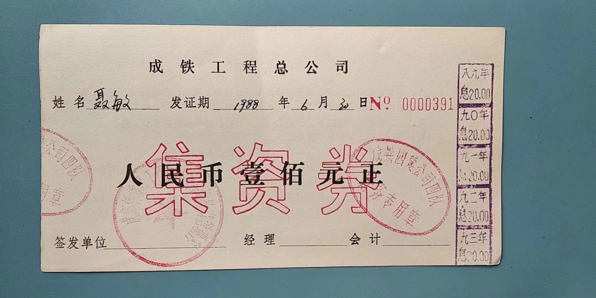 成铁工程总公司集资券