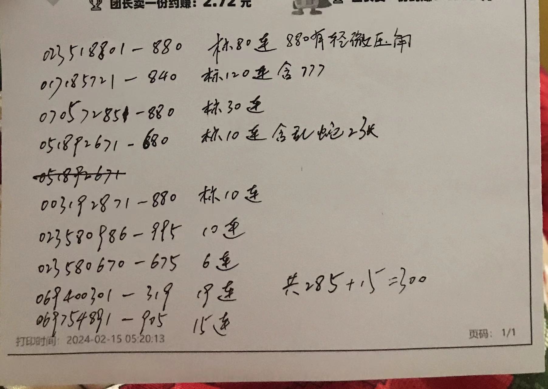 76出300张小龙钞,