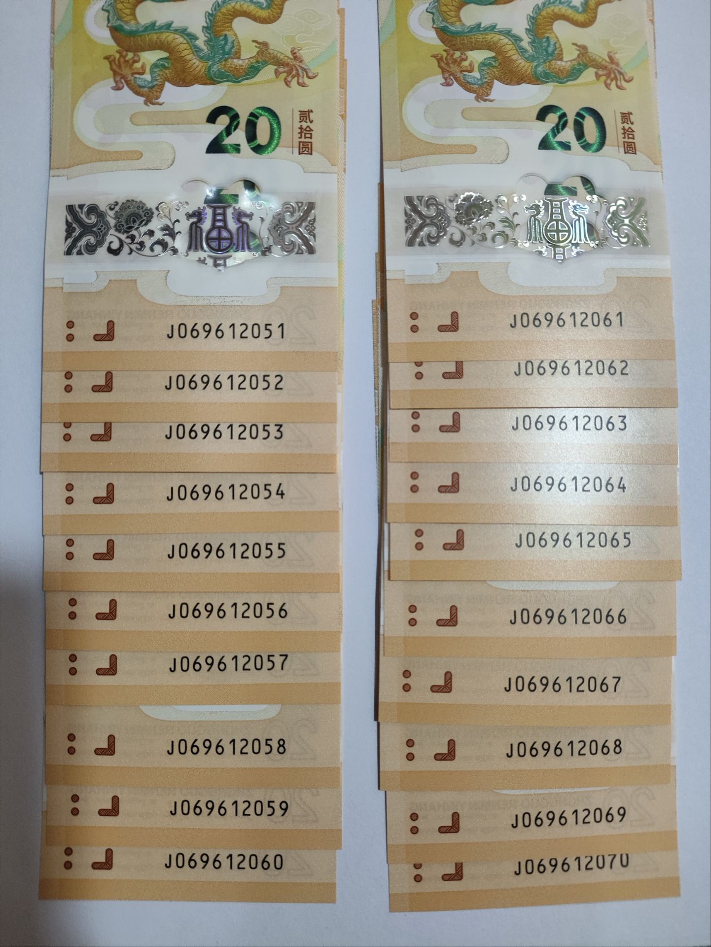 2、069612051--069612070:标准二十连号。
