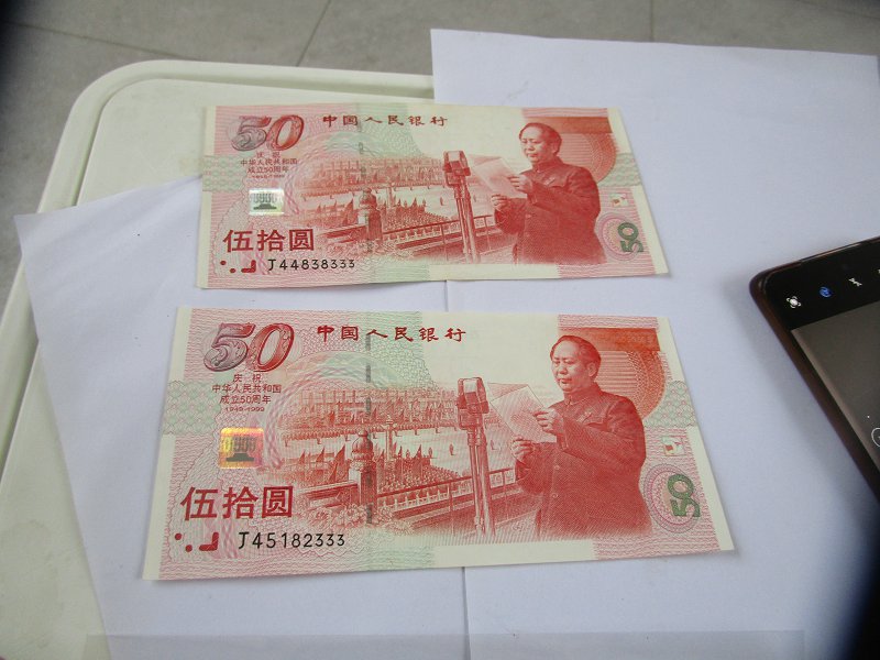 → 售二张原票直板建国钞333豹子号420一张,售无四七尾88建国钞