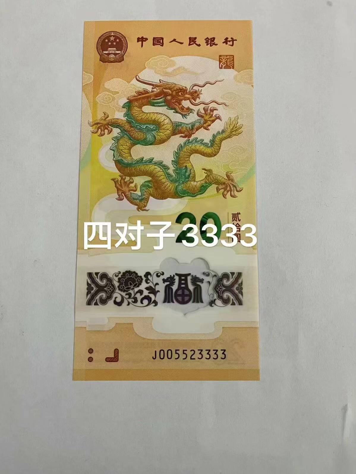 小龙钞3333尾号龙年纪念钞 狮子号3333 四对子 永恒号 无47 全新
