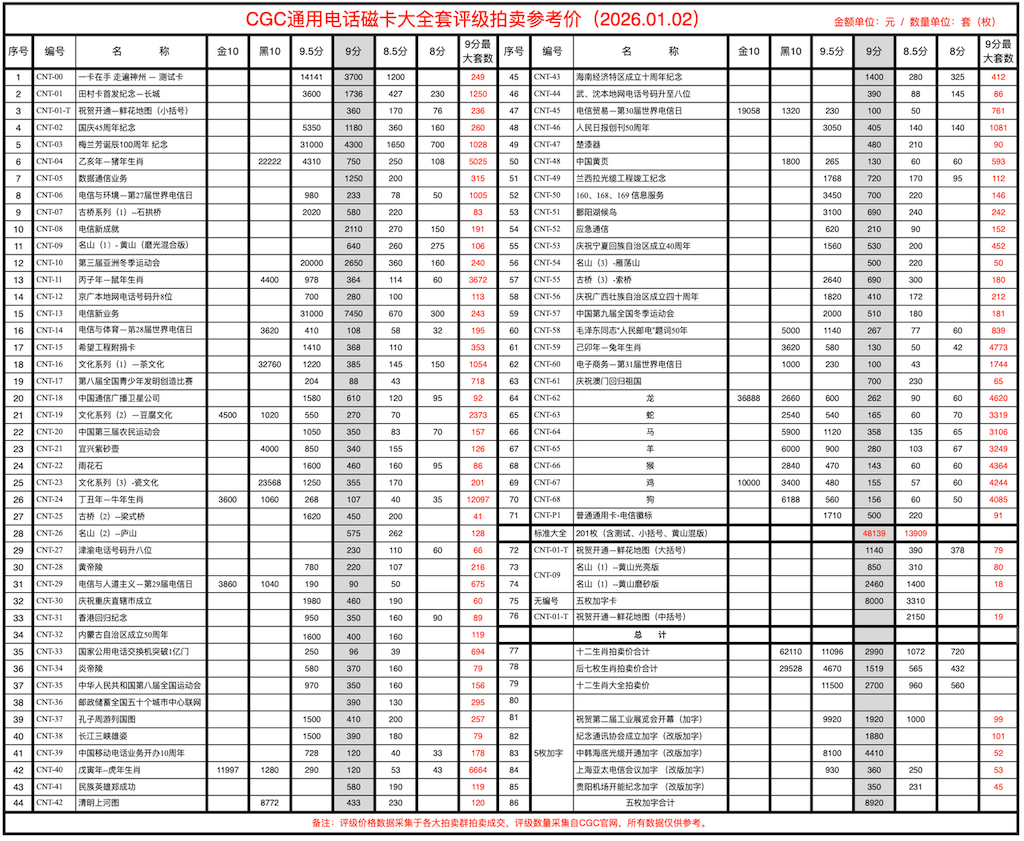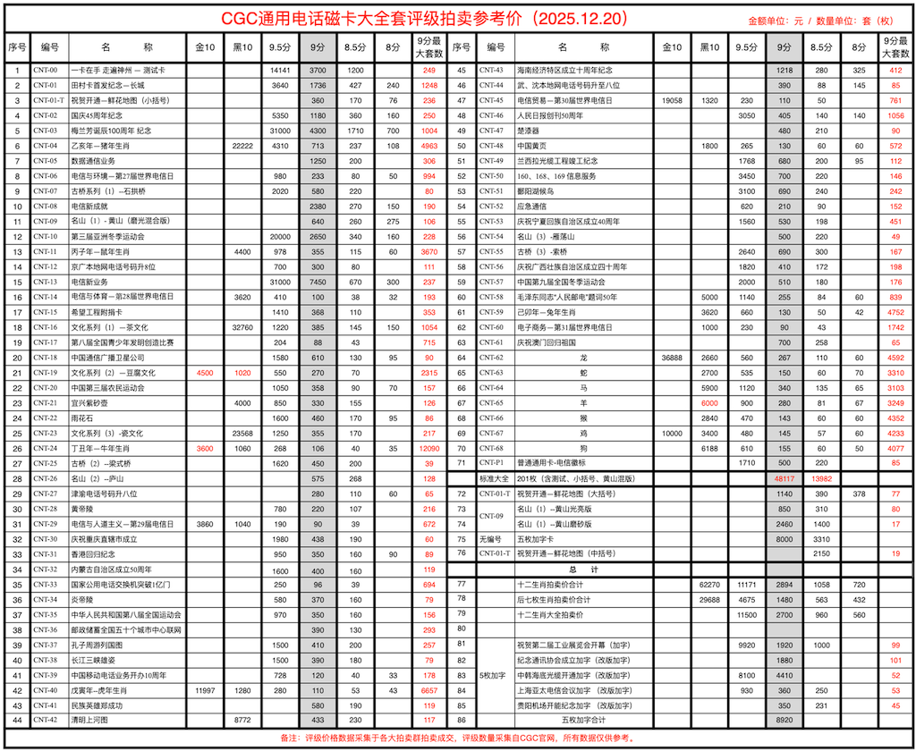 CGC中国通用电话磁卡拍卖成交价 (即时更新)
