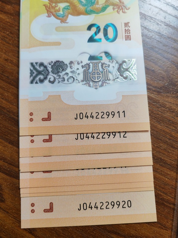龙钞四对子 标准四连对 044229911~20