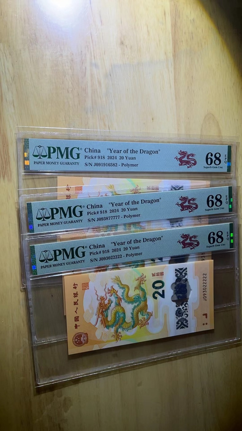 小龙钞 无四七老虎号22222标十, 老虎号PMG68分。