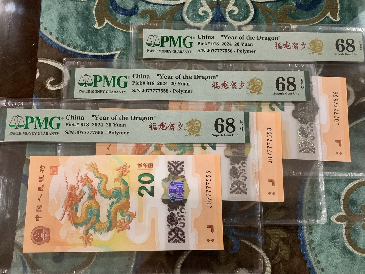 → 评级小龙钞077777555、556、558三张68级