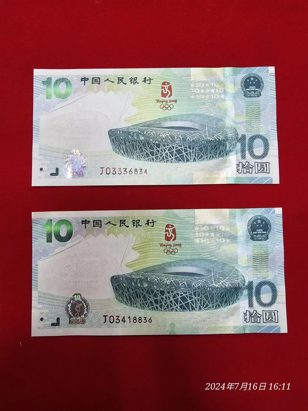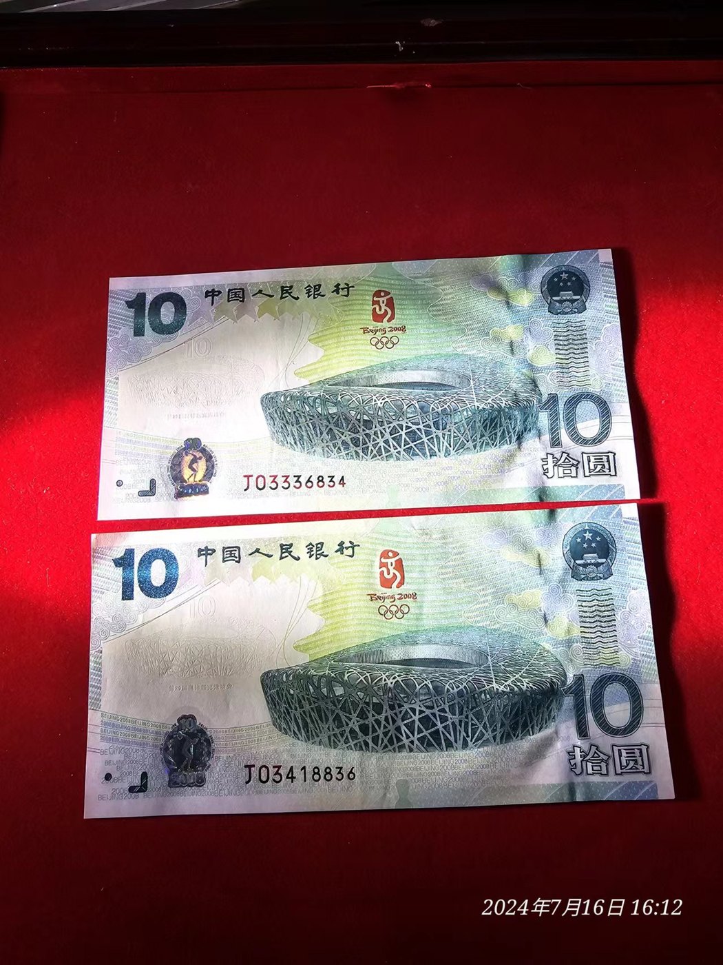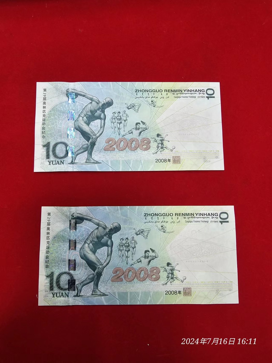 → ★★★奥运绿钞2张软折痕★★★★