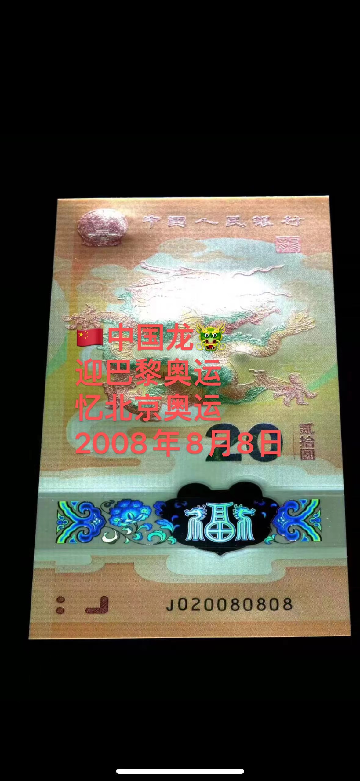 → 20080808北京奥运开幕日小龙钞一张,庆祝巴黎奥运会开会