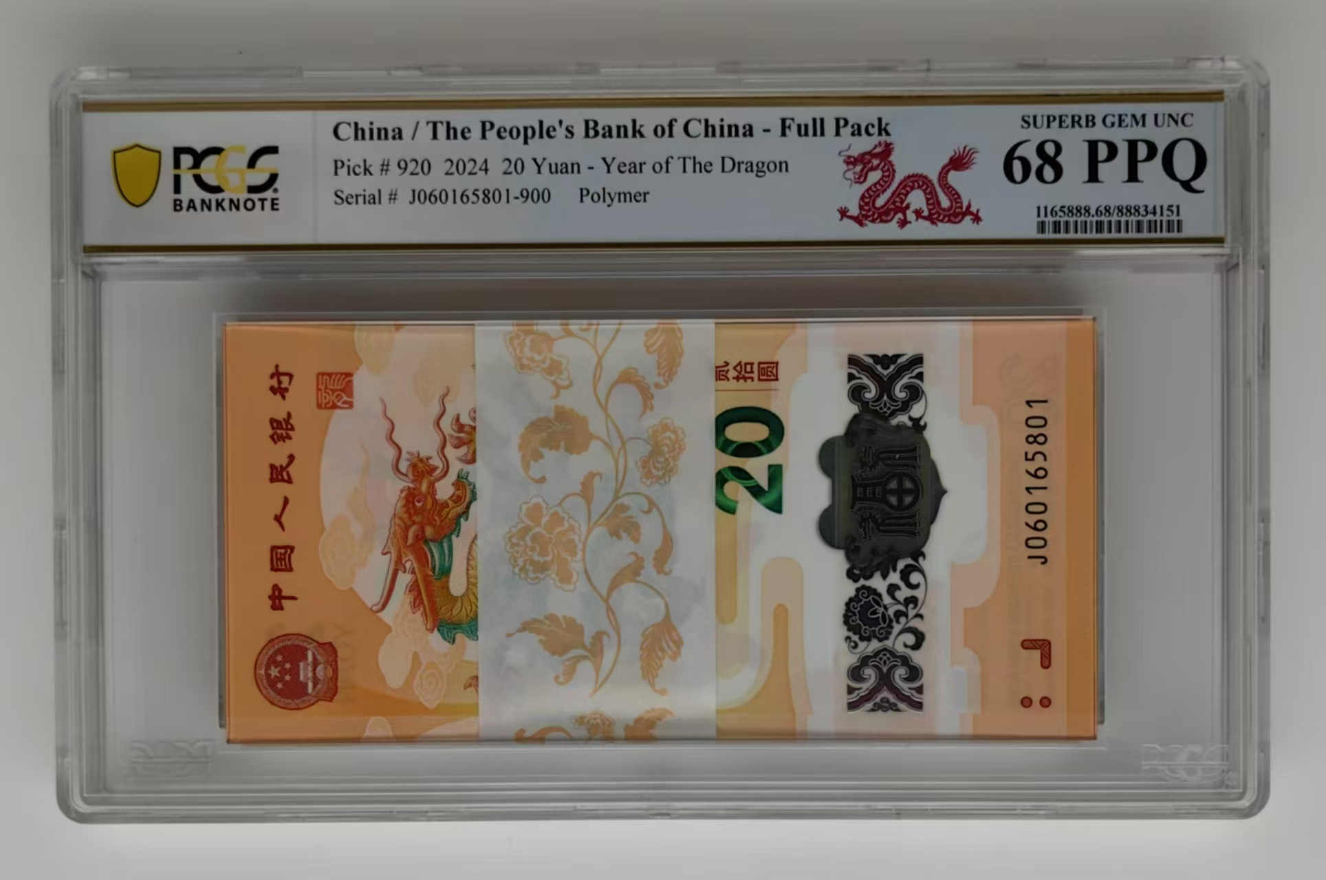 出售:龙钞标百J060165801-J060165900 PCGS68 49000元
