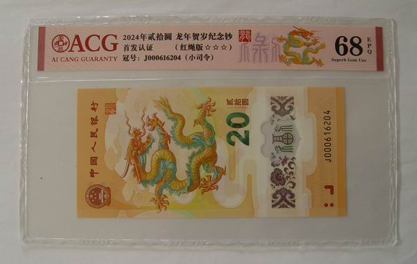 出售爱藏评级68分小龙钞小司令加红绳版一张,售价:200元,包顺丰。