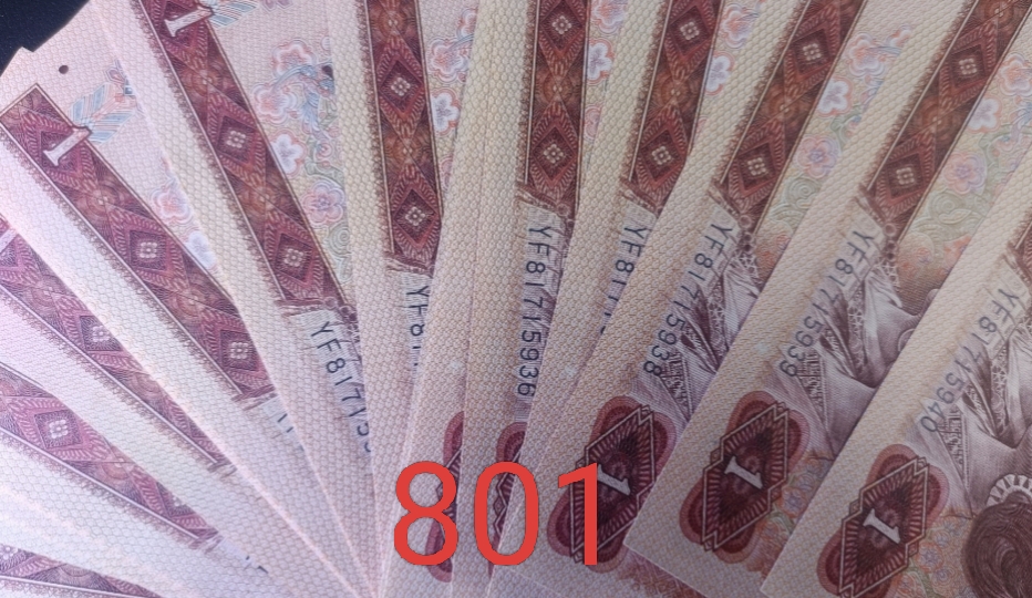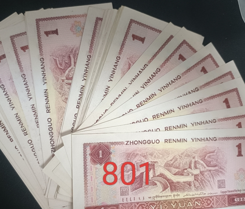 3.2元一张出售801第四套人民币一元纸币,小连号,品相完好。