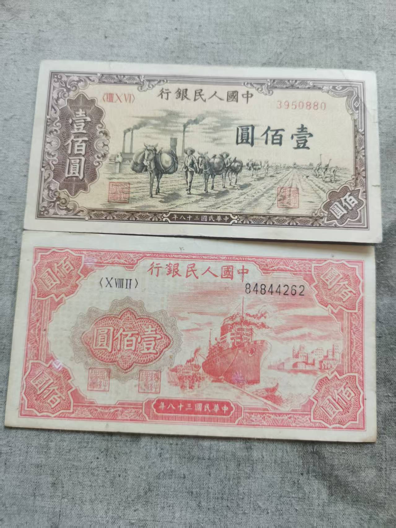 → 一版币两张.托运一张.红船一张