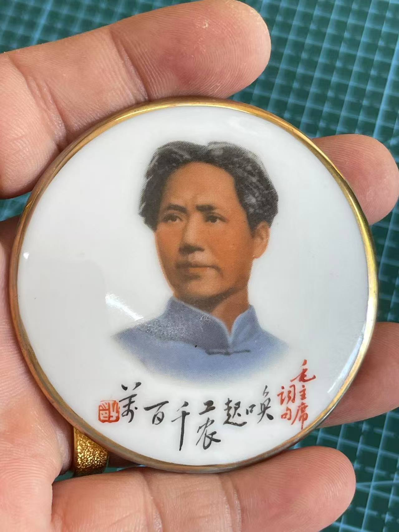 → 手绘精品半首诗词毛主席瓷像章,