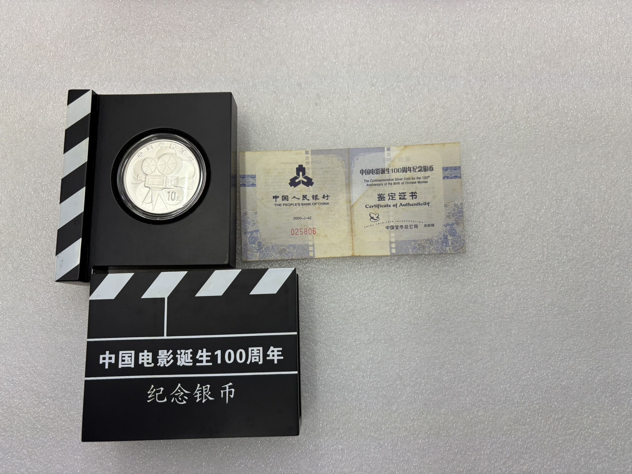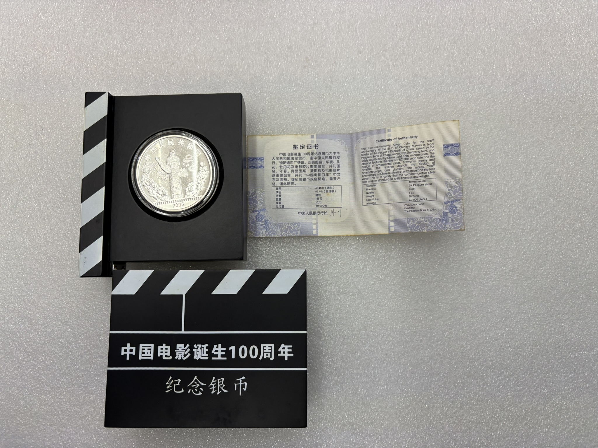 2005年电*影百年1盎司银币1枚,带原盒证书,价格420元