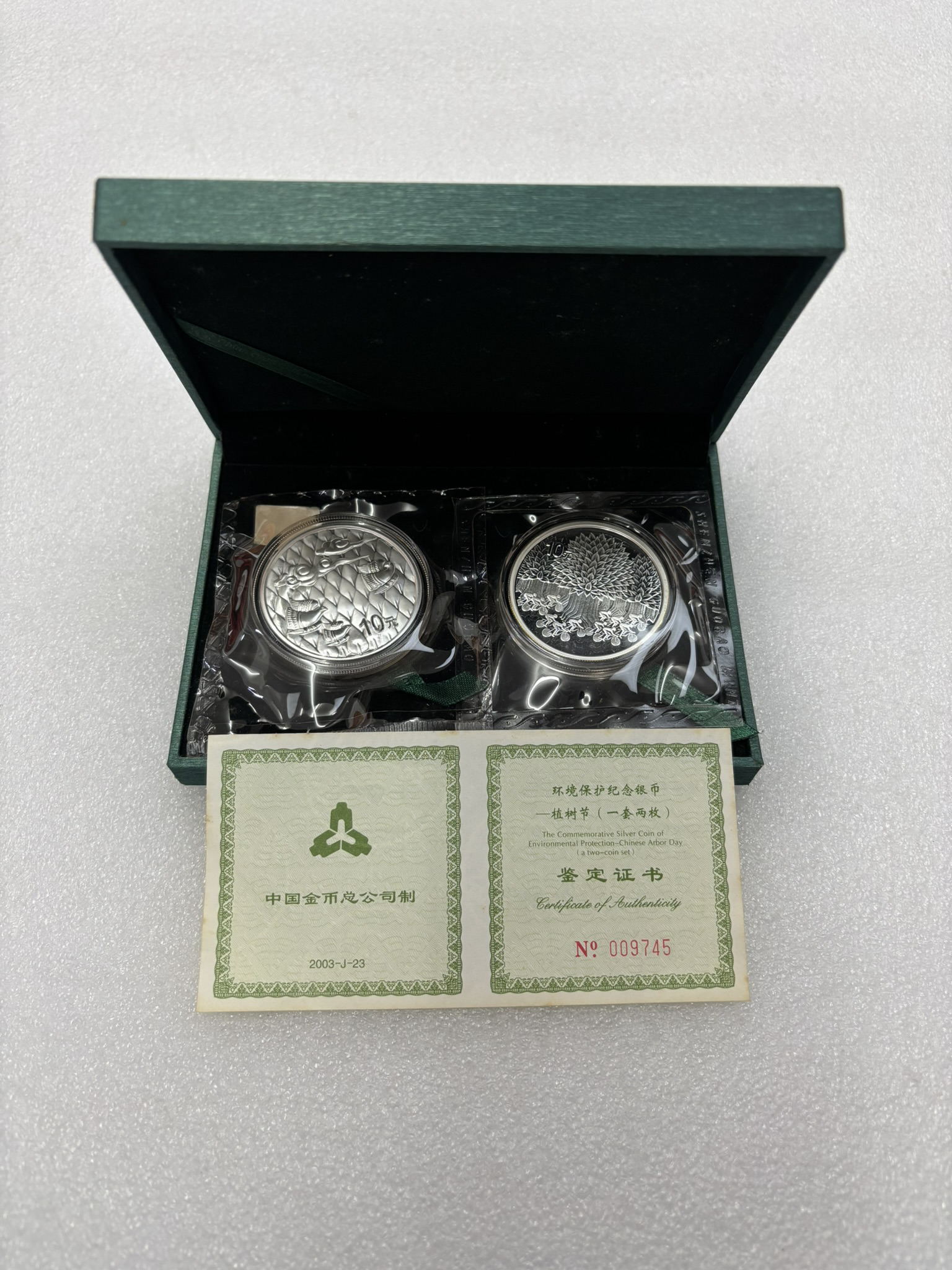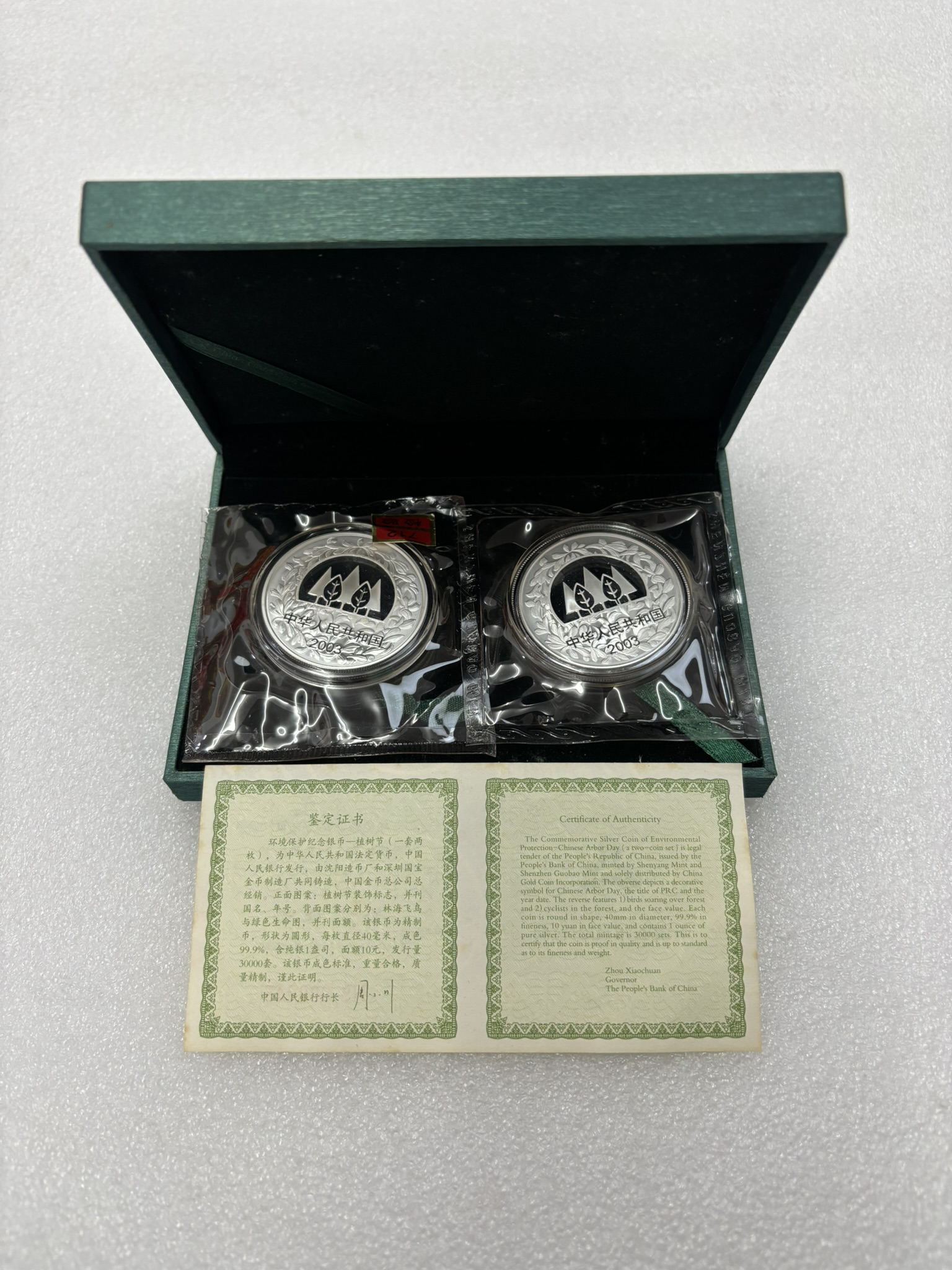 2003年植树节1盎司银币1套2枚,原封带原盒证书,价格850元