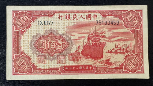 → 美品一版币:壹佰圆红轮船