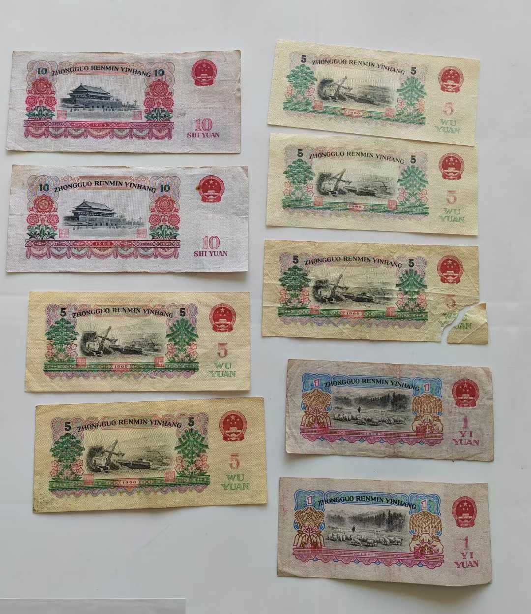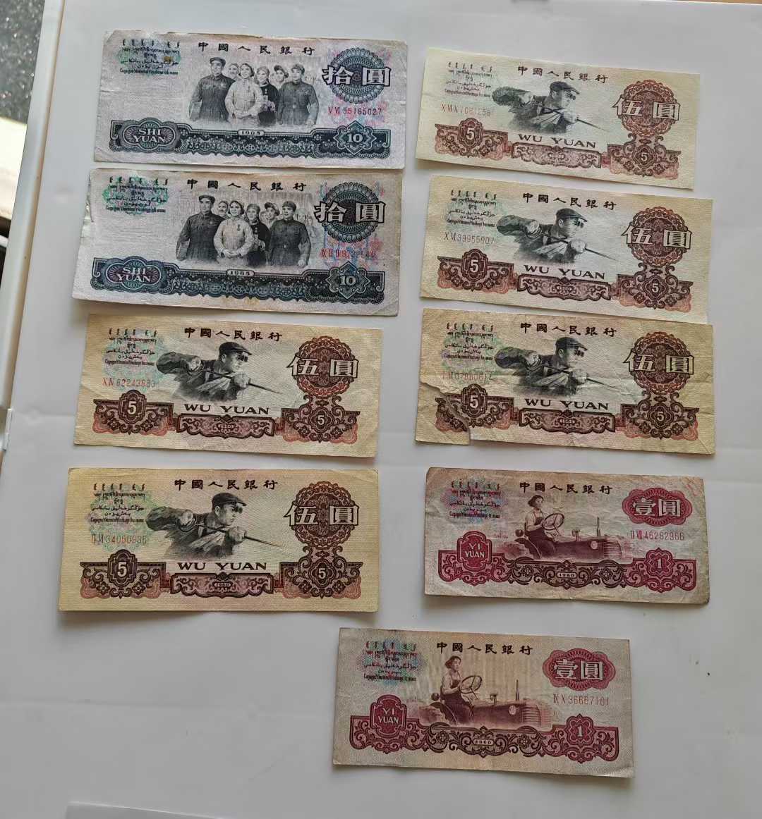 三版十元、五元、一元共9枚(二枚五元非原票)共688元包挂号信