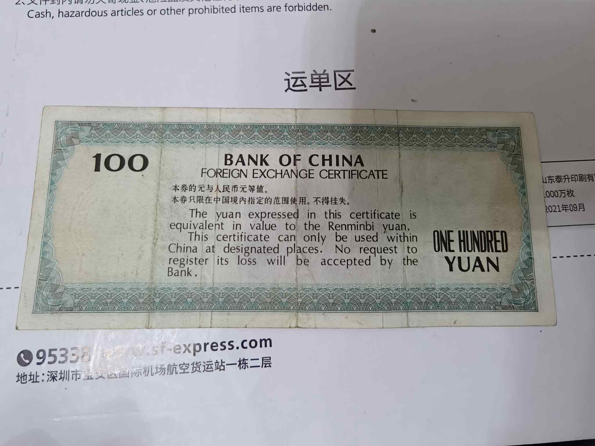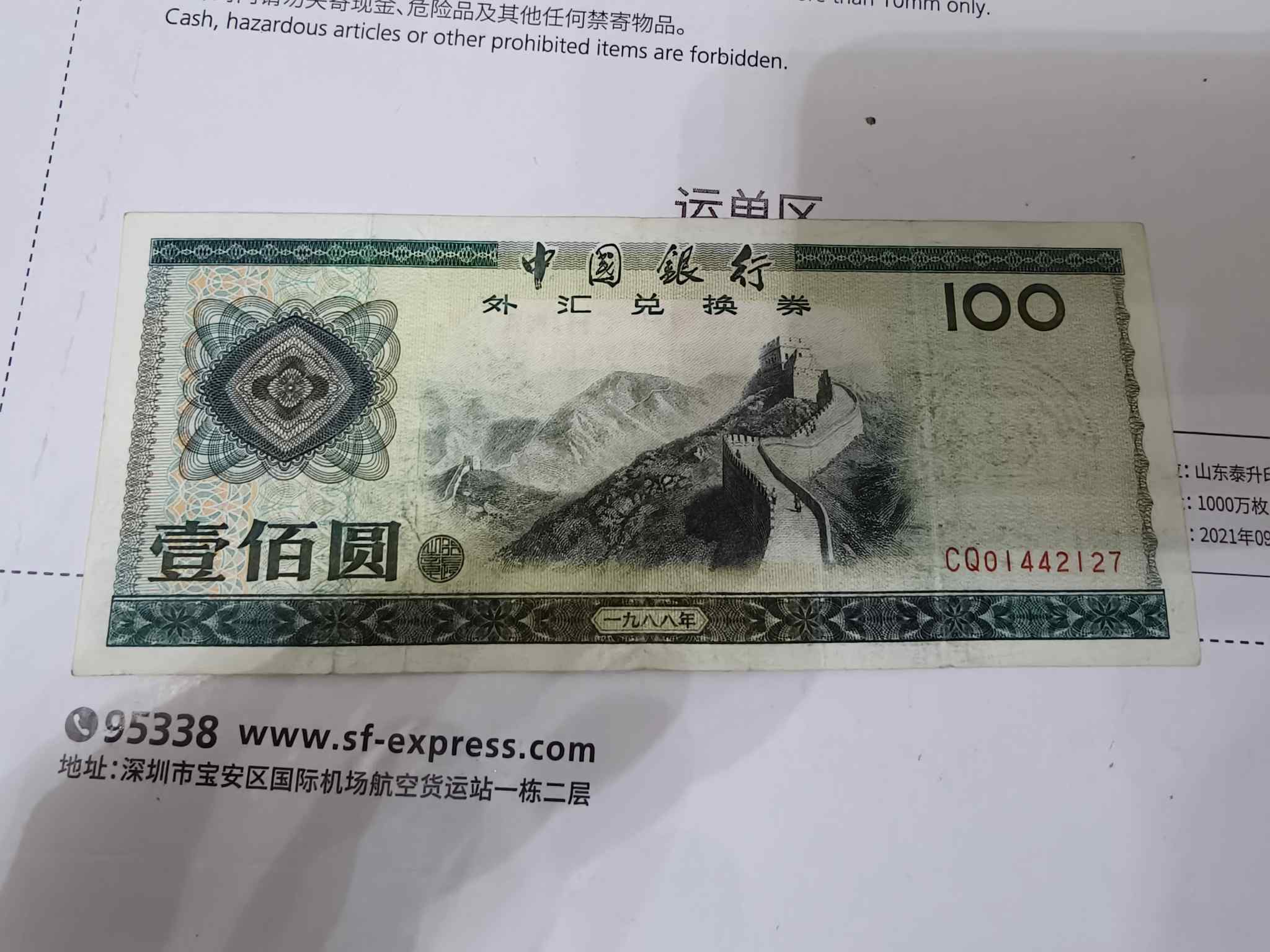 → 88年外汇券100一张