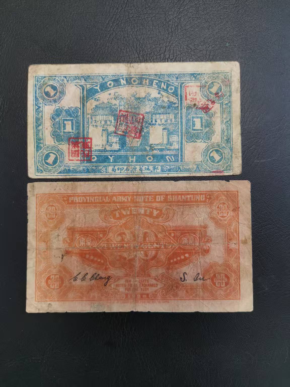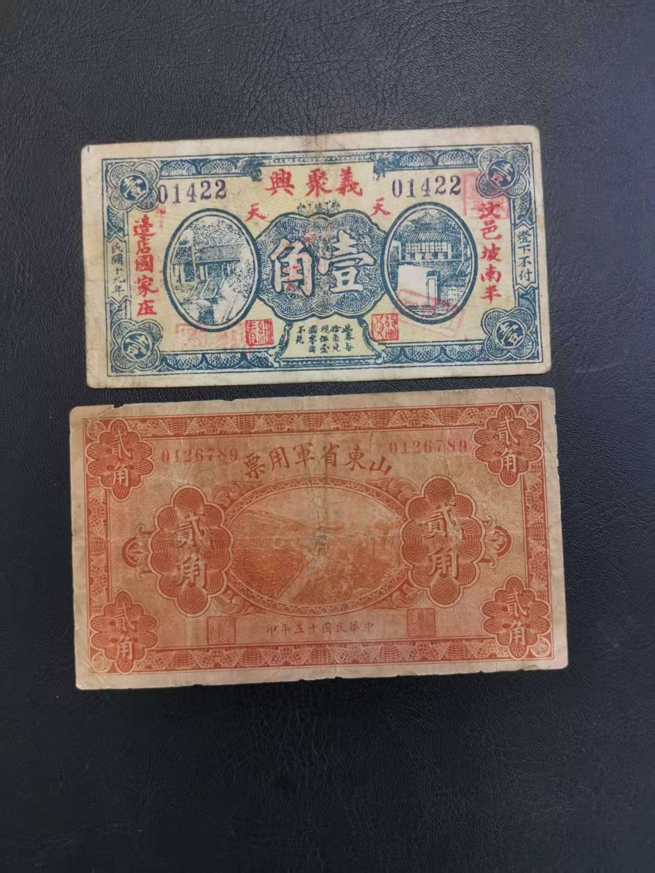 出 义聚兴1角,山东省军用票2角