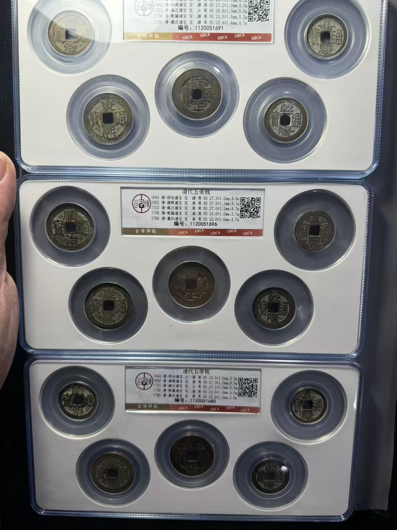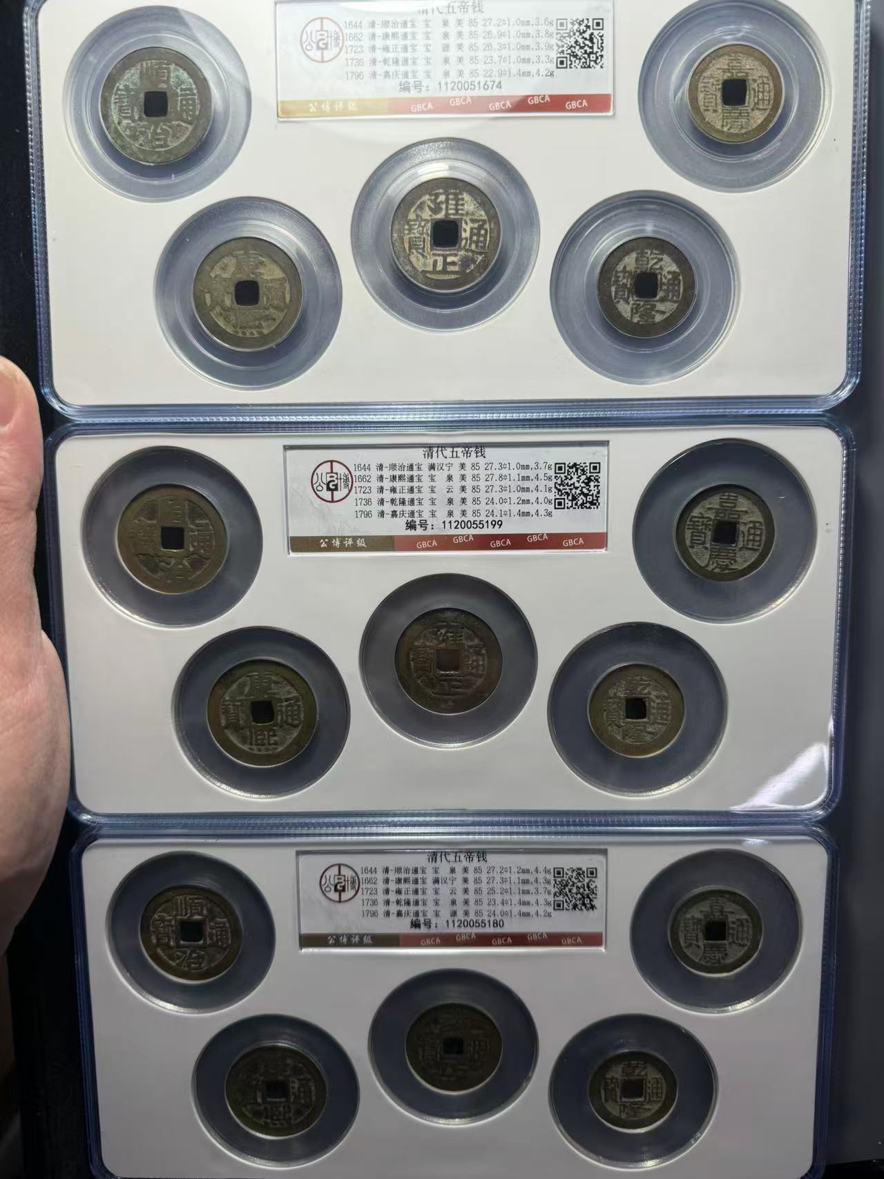 都是自己精挑细选自己送评的五帝钱,都是85分,品相一流的好,550元一套。