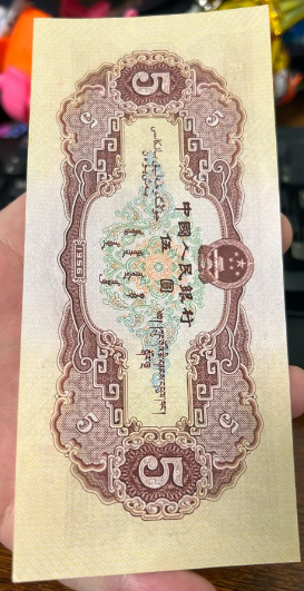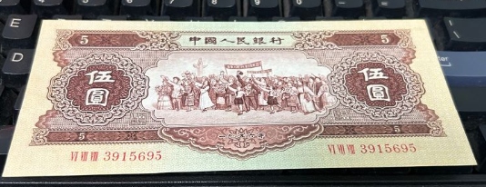 → 全新原票无47的黄五元一张。