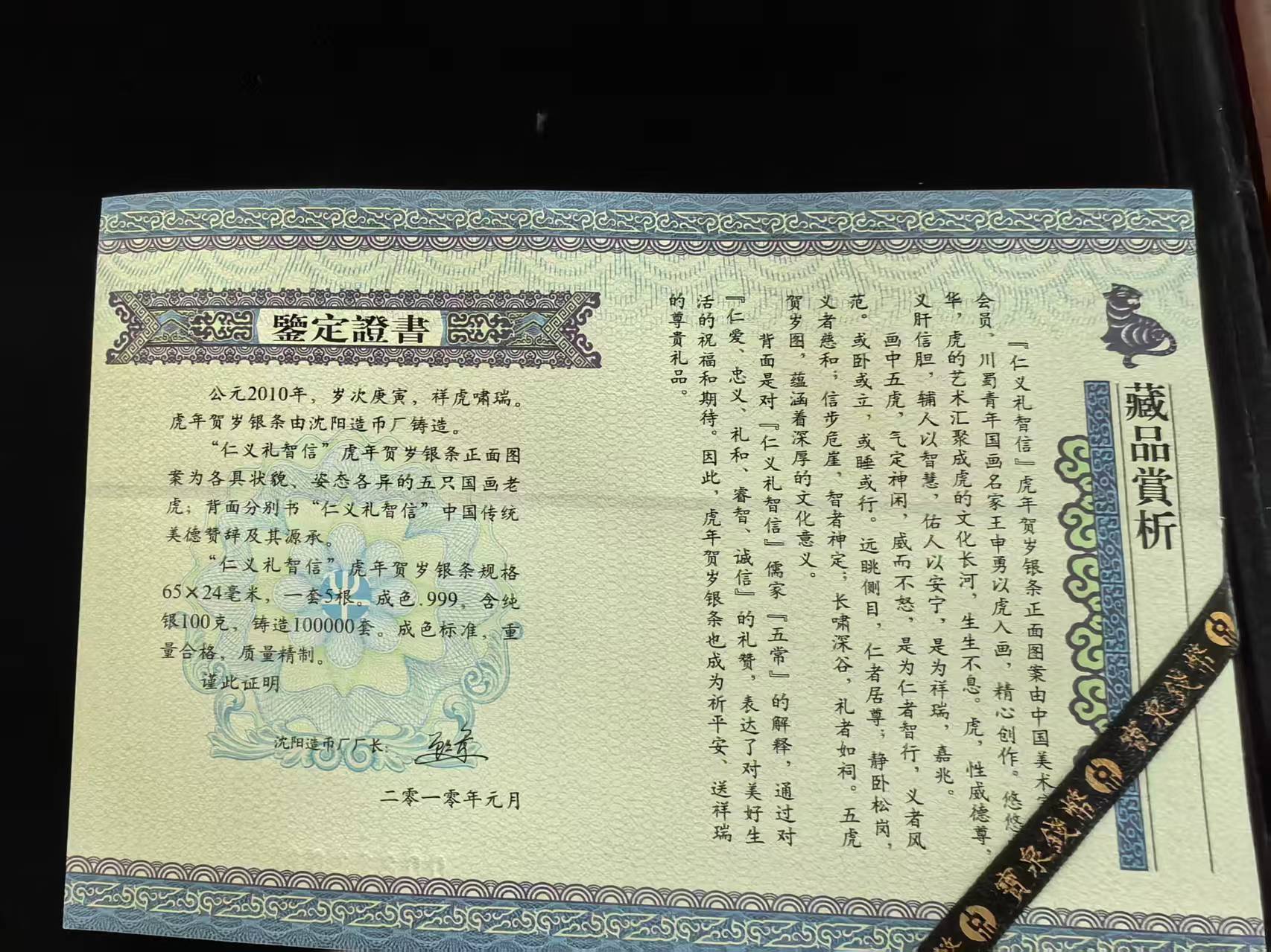 沈阳造币厂虎年银条