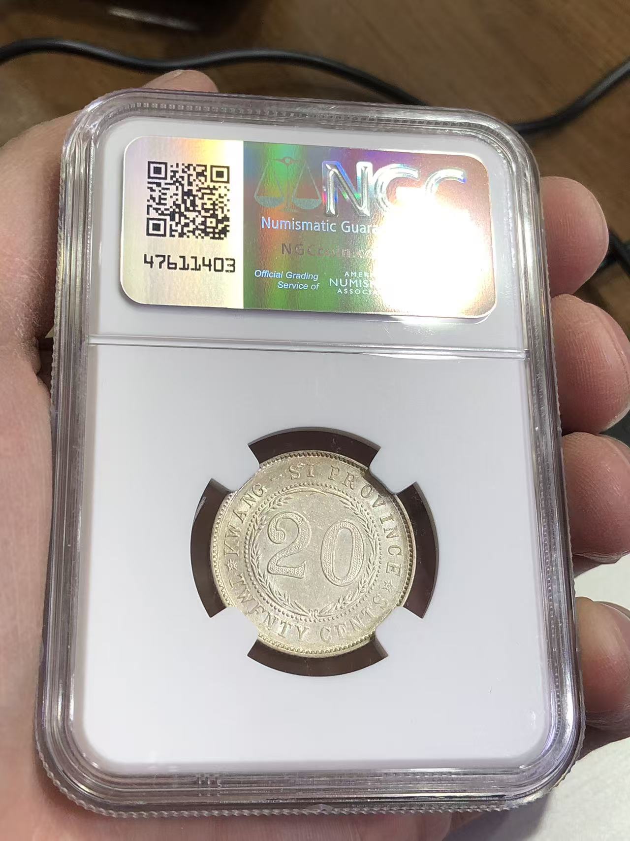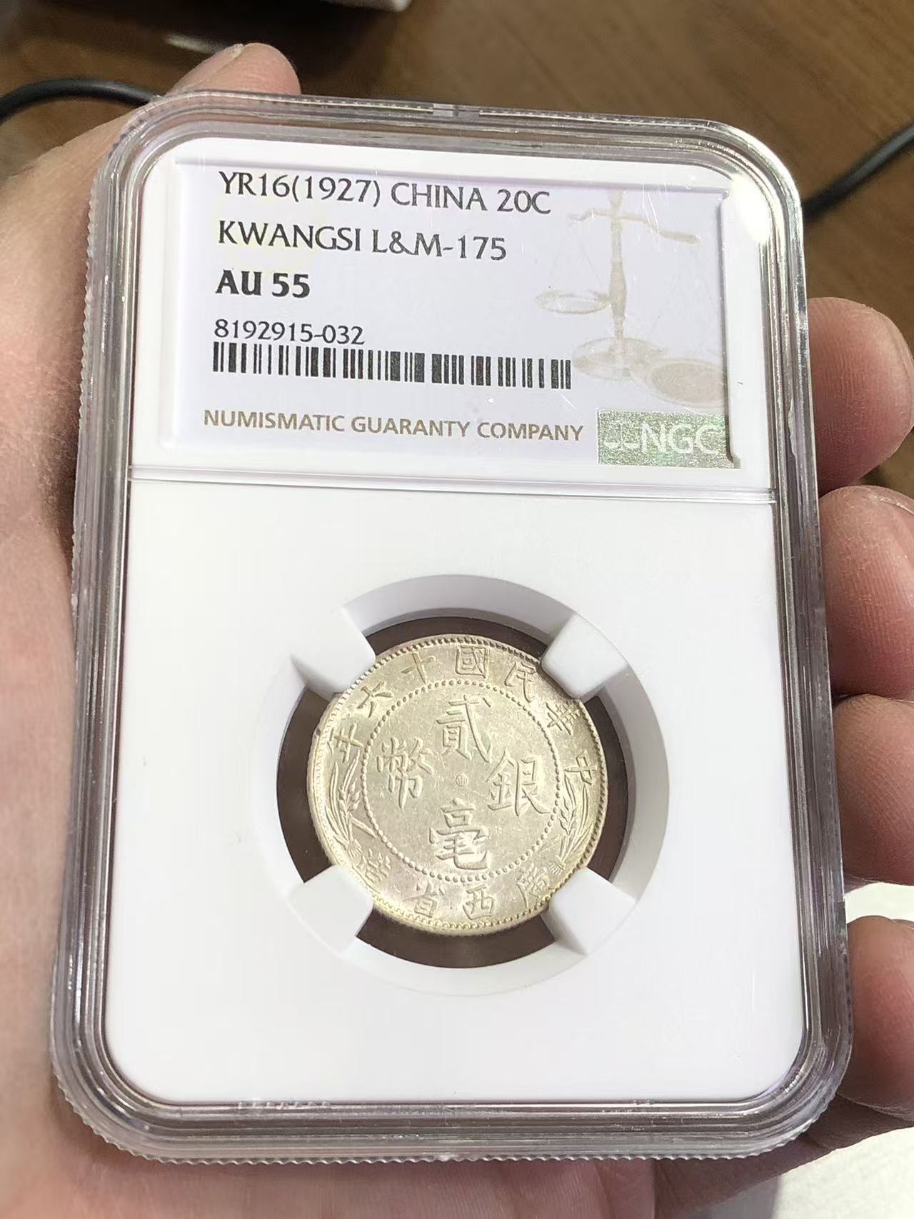 ★NGC55分 原光 民国十六年“ 广西中心西 贰毫银币”