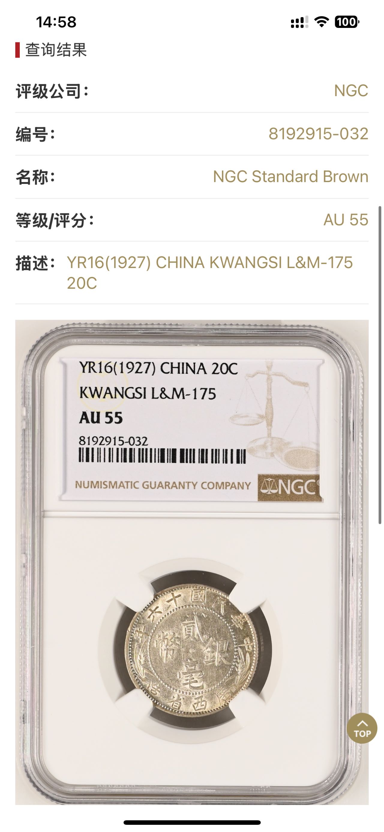 美国NGC评级AU55分 原光一流状态