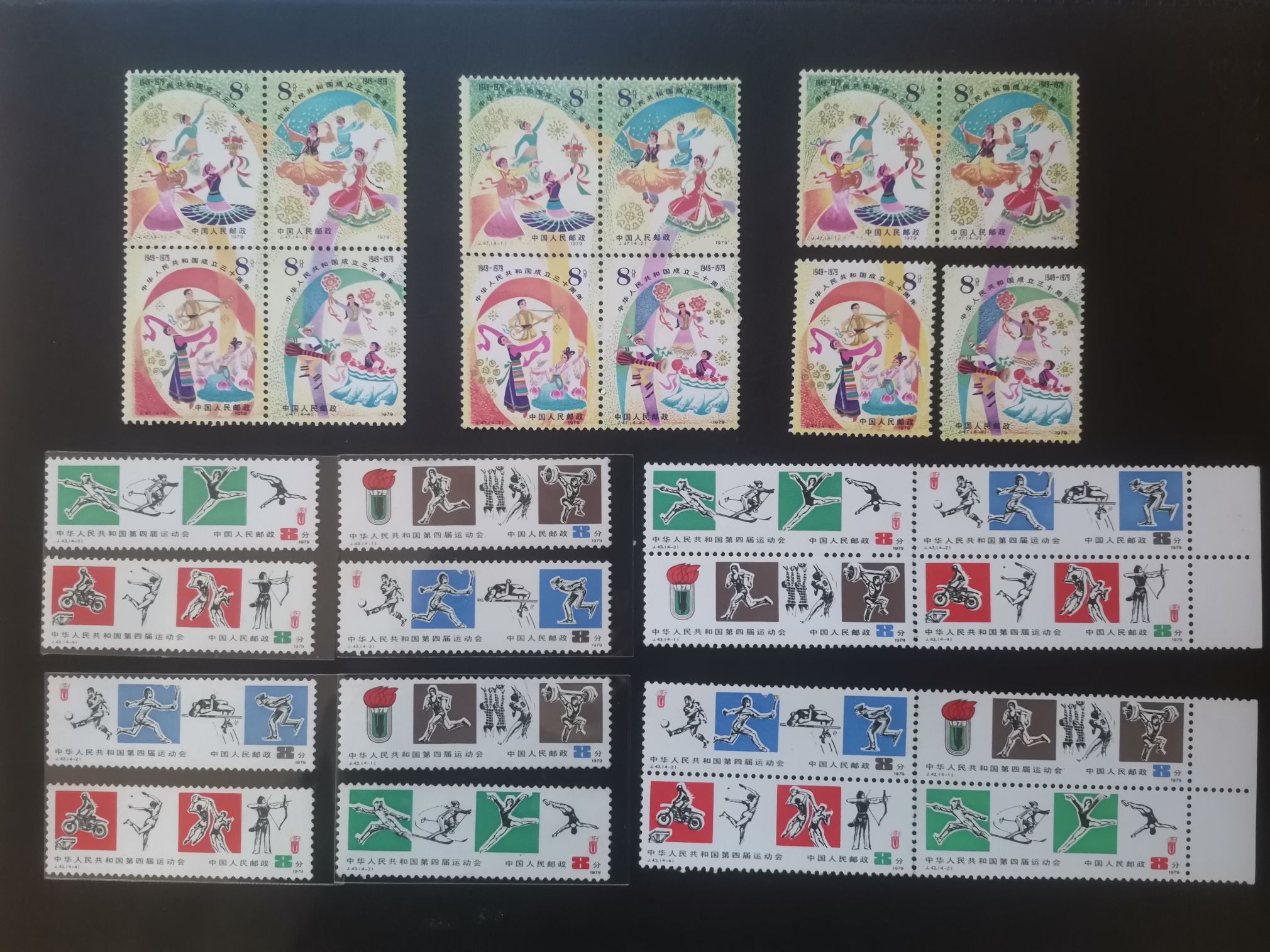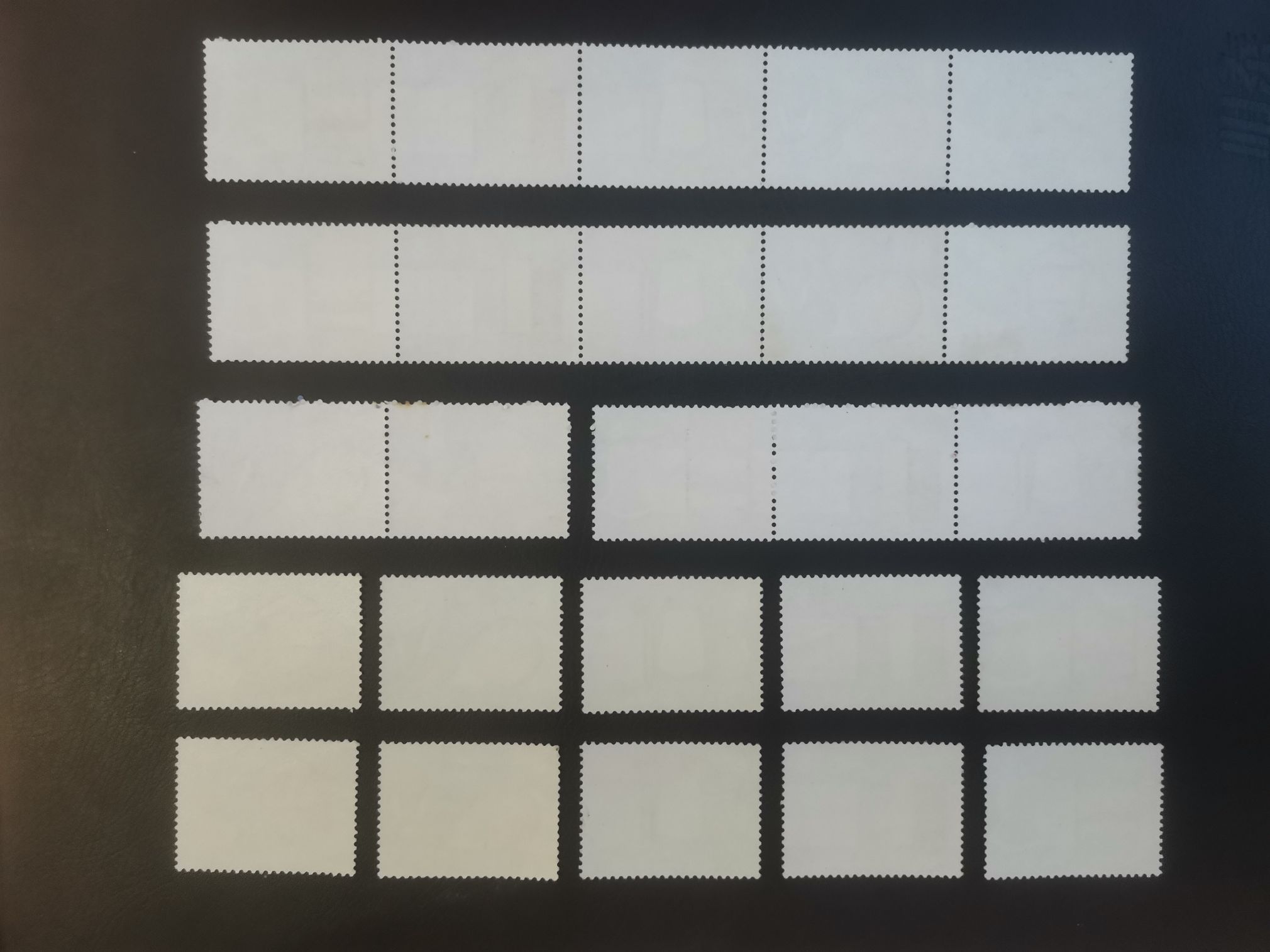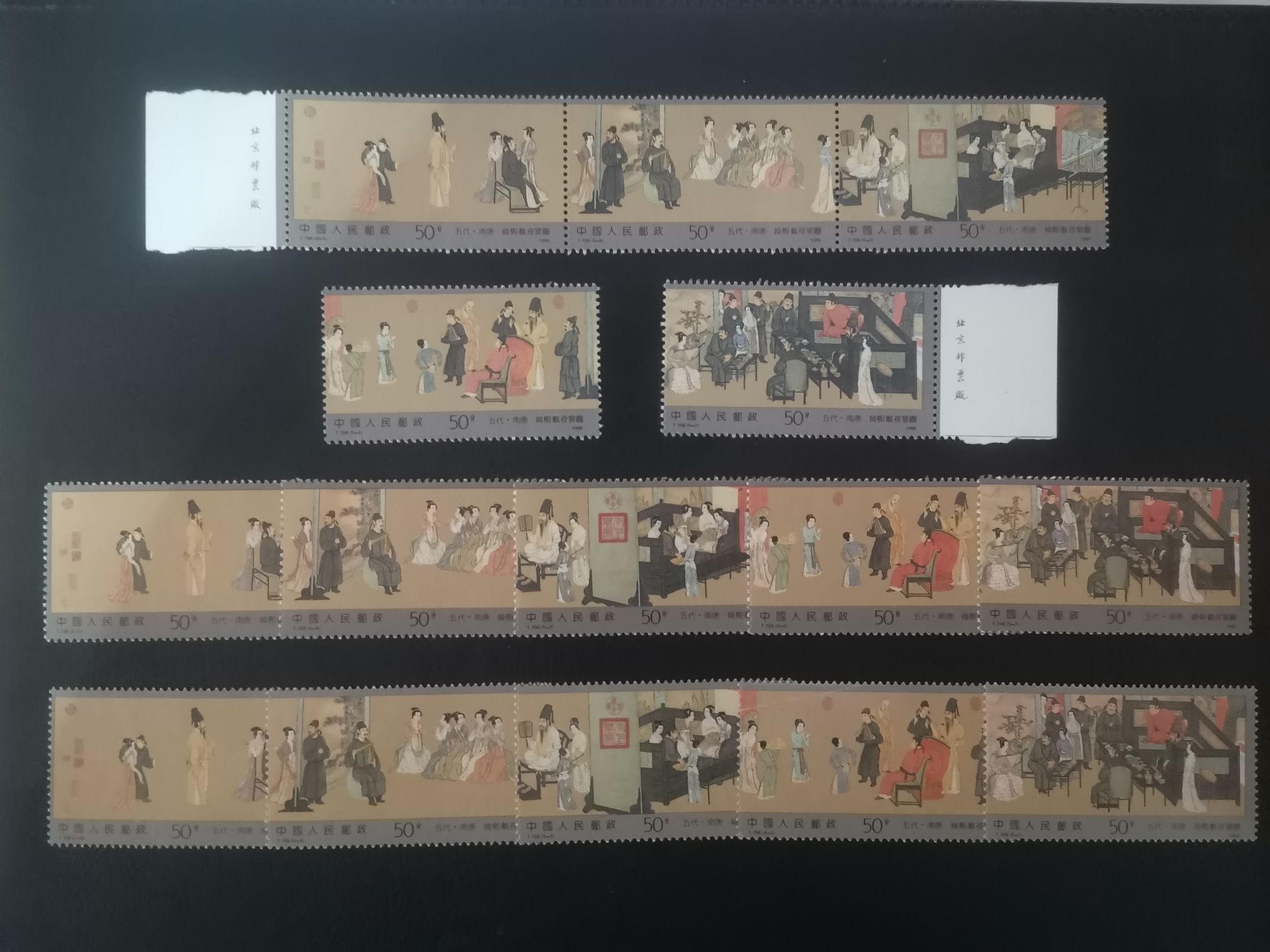 如图:一些折齿或断开的连票套票,原胶上品,无缺角缺齿,无薄无裂: