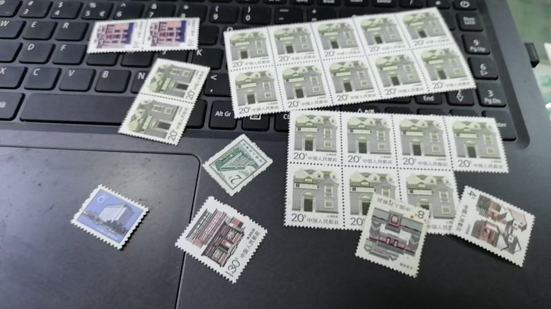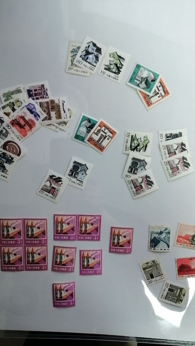 8分长城【0.5X44枚】北京饭店【0.5X42枚】一大【2元X12枚】上海民居【0.5X30枚】华山【0.2X28枚】