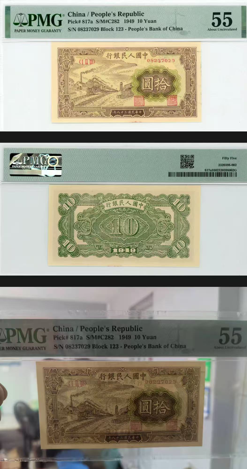 一版中端品种黄火车美评PMG55无4,全新原票首发冠,凹凸感强烈,对光无黑线,售价4100包顺丰