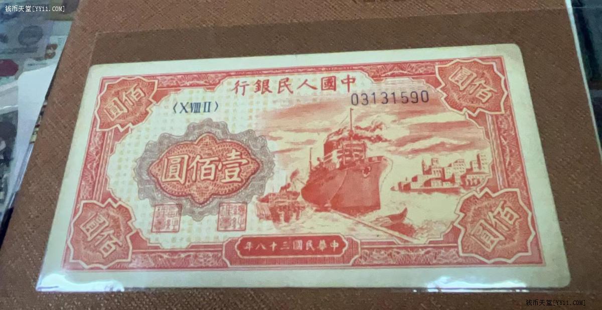 原票一版100元红轮船一张