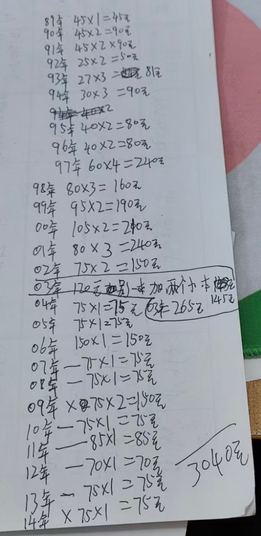 09年3份*75元=225元 89年------2014年一共49本 共3310元