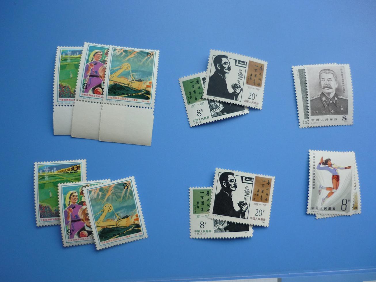 宁夏裸单17,宁夏带下边的齿间不折近全品22,小鲁迅近全品13,提供两套随机发,斯大林近全品7,女排近全品6,白求恩近全品12,提供三套随机发,万国近全品86,返奥近全品34,二二八近全品55,宋庆龄裸单金亮3,宋庆龄边折金亮无黄6,五四银亮5