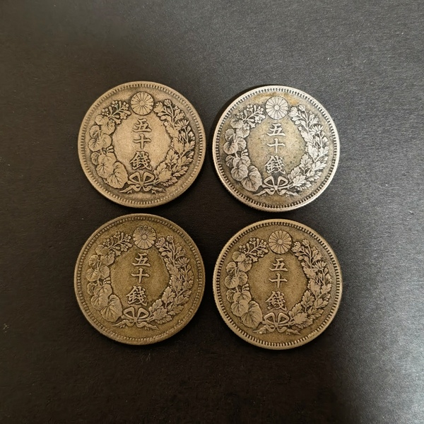 品相很好的日本旭日50钱银币4枚