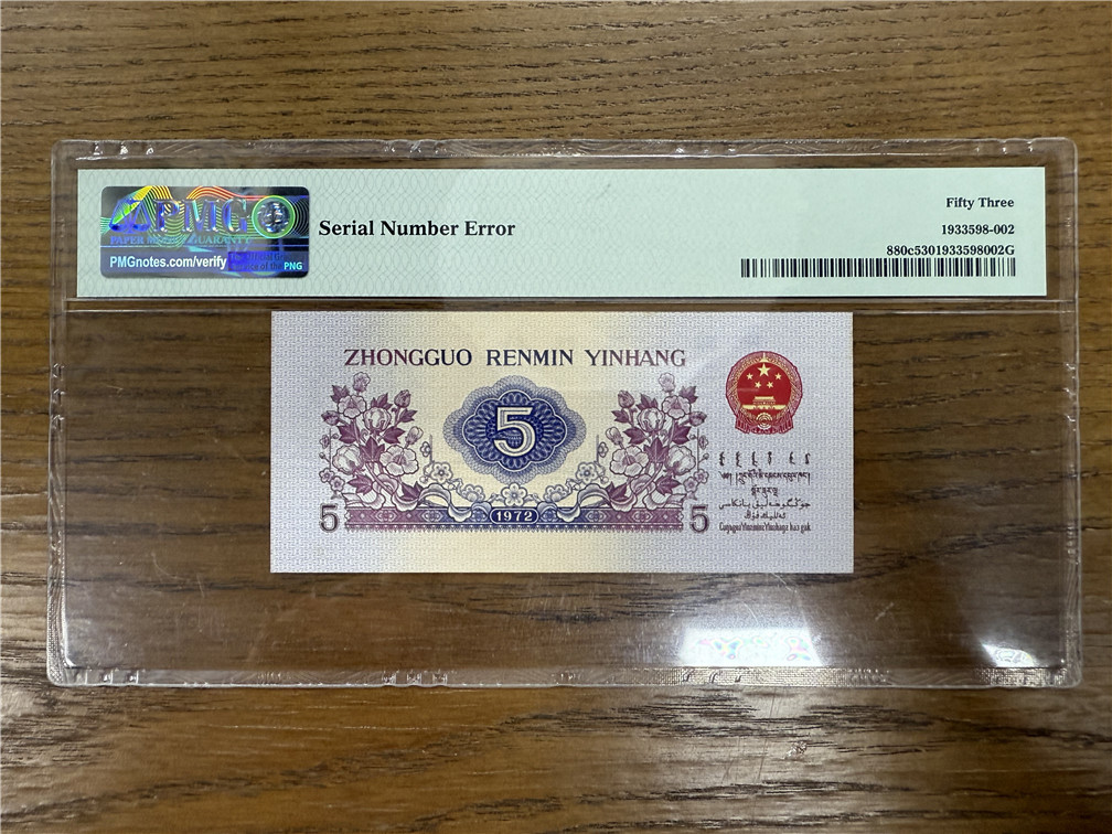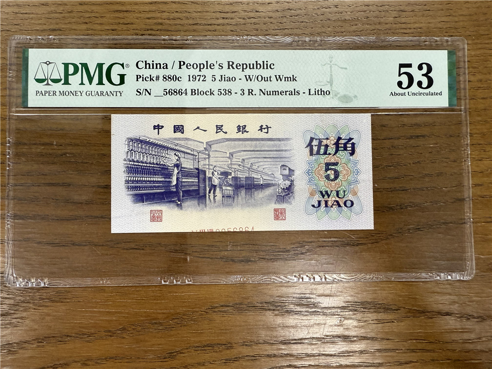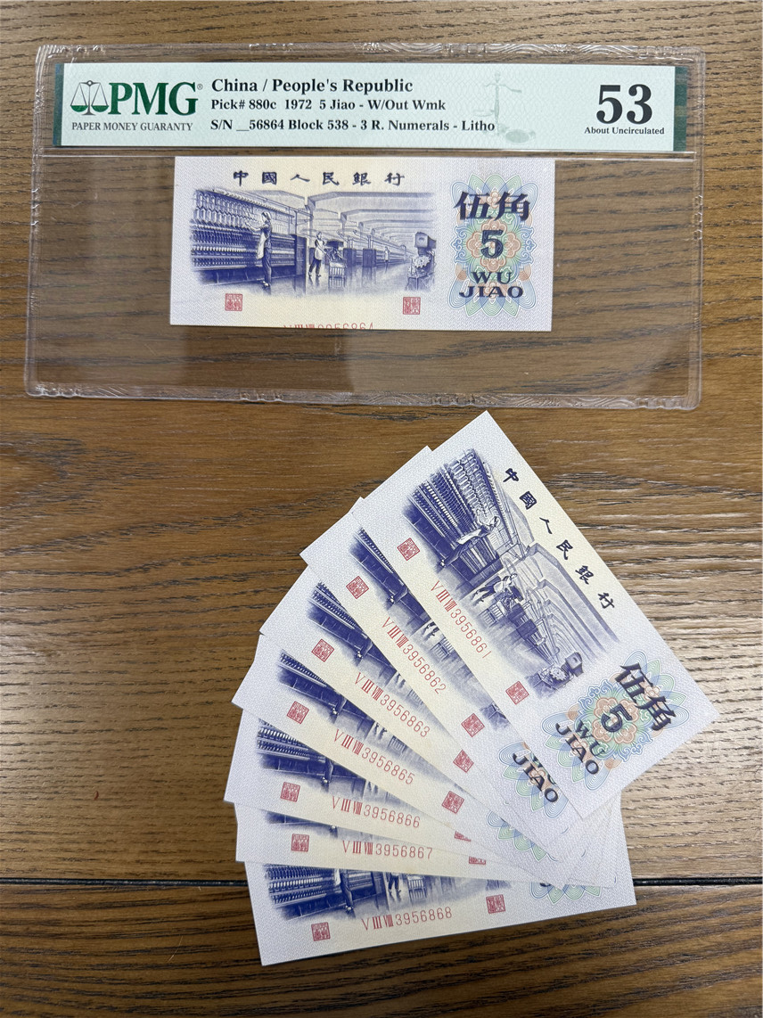 5角纺织平版无水印 号码错印 8枚 一张错版-56864 PMG53 售9800元,