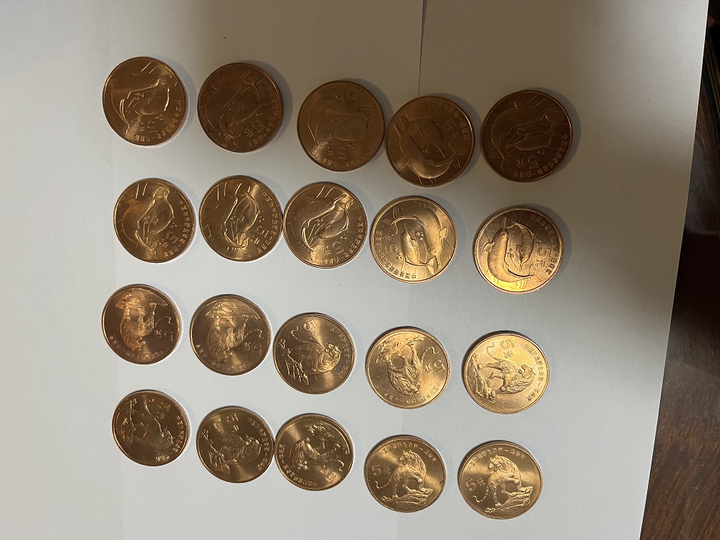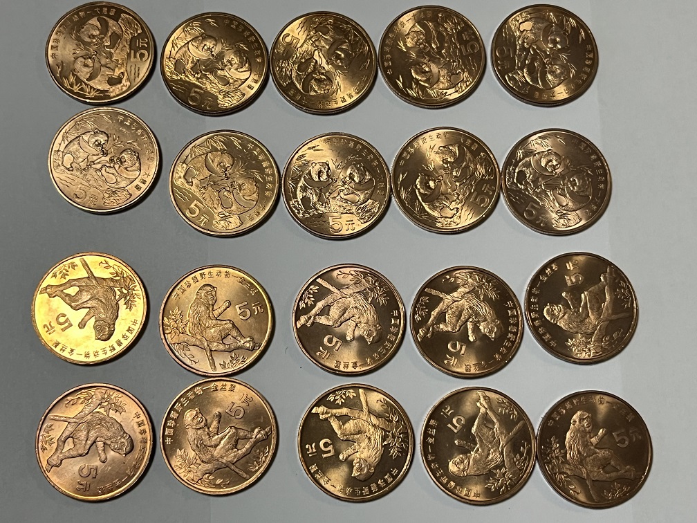 珍稀动物纪念币,好品10套(大部分卷光品相,部分微油)一起要218元1套。可以零售228元1套(带方盒)