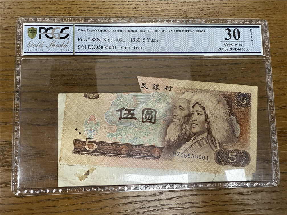 805 裁切错误 污渍,裂口 DX05835001 PCGS 30D 售3.3万,