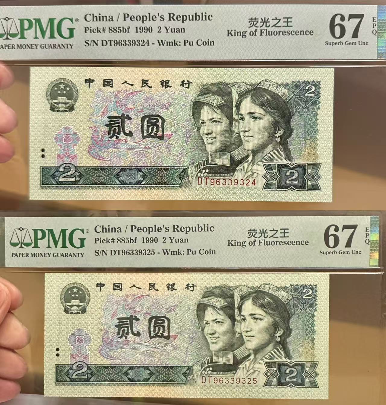售902DT绿幽灵首发。这个非常稀少的哦,902绿幽灵首发冠只发行在DT92开头小部分/95开头的小百分和96.97.98.99开头,所以说很稀有的哦.曾经都是1-2千/张成交的哦,今天她来了:优惠价来了,全新品相:品绝没斑/斑看图,非常具有收藏价值.投资价值,欣赏价值,把玩,探研价值,喜欢和研究钱币的朋友们,千万别错过了、可遇不可求的精品