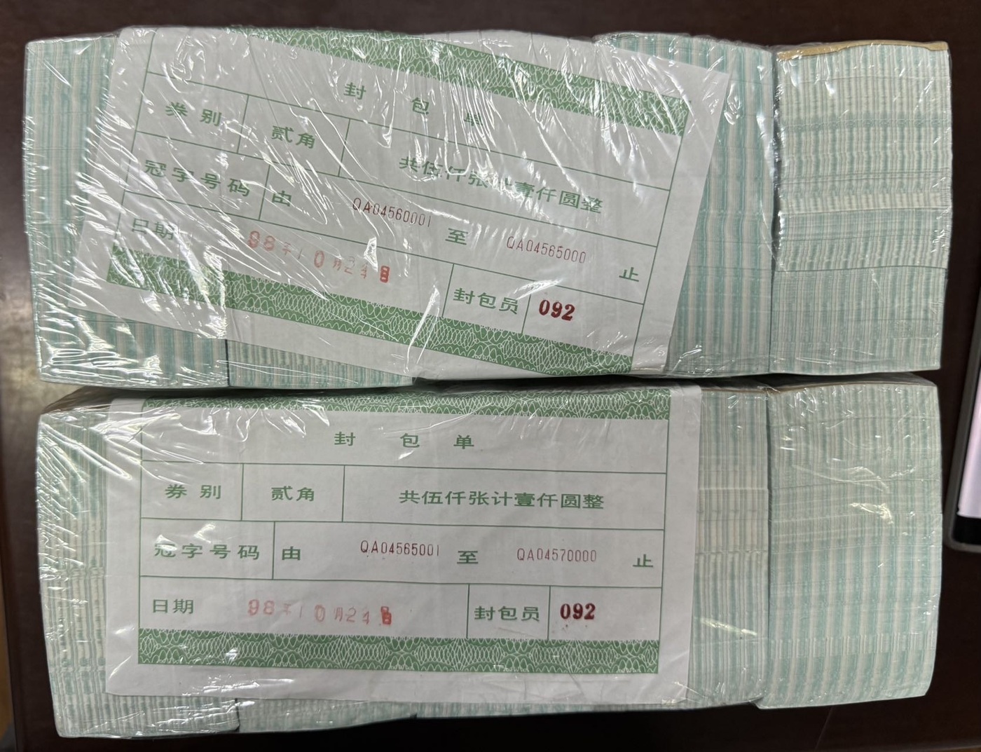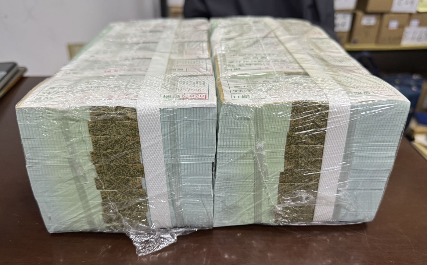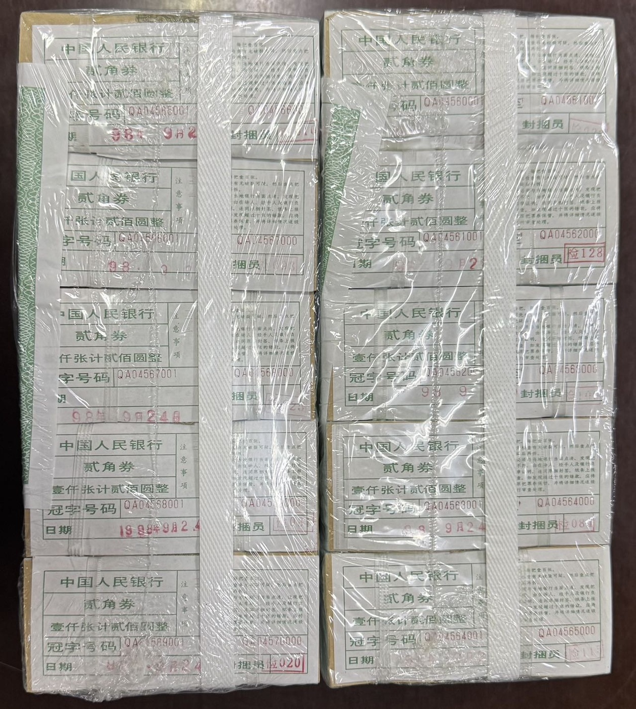 整条8002,两条连号的,含66666,在紫光灯下没有白斑,历史最高:7.8元/张,现在仅售:3.1元/张,谢谢关注!