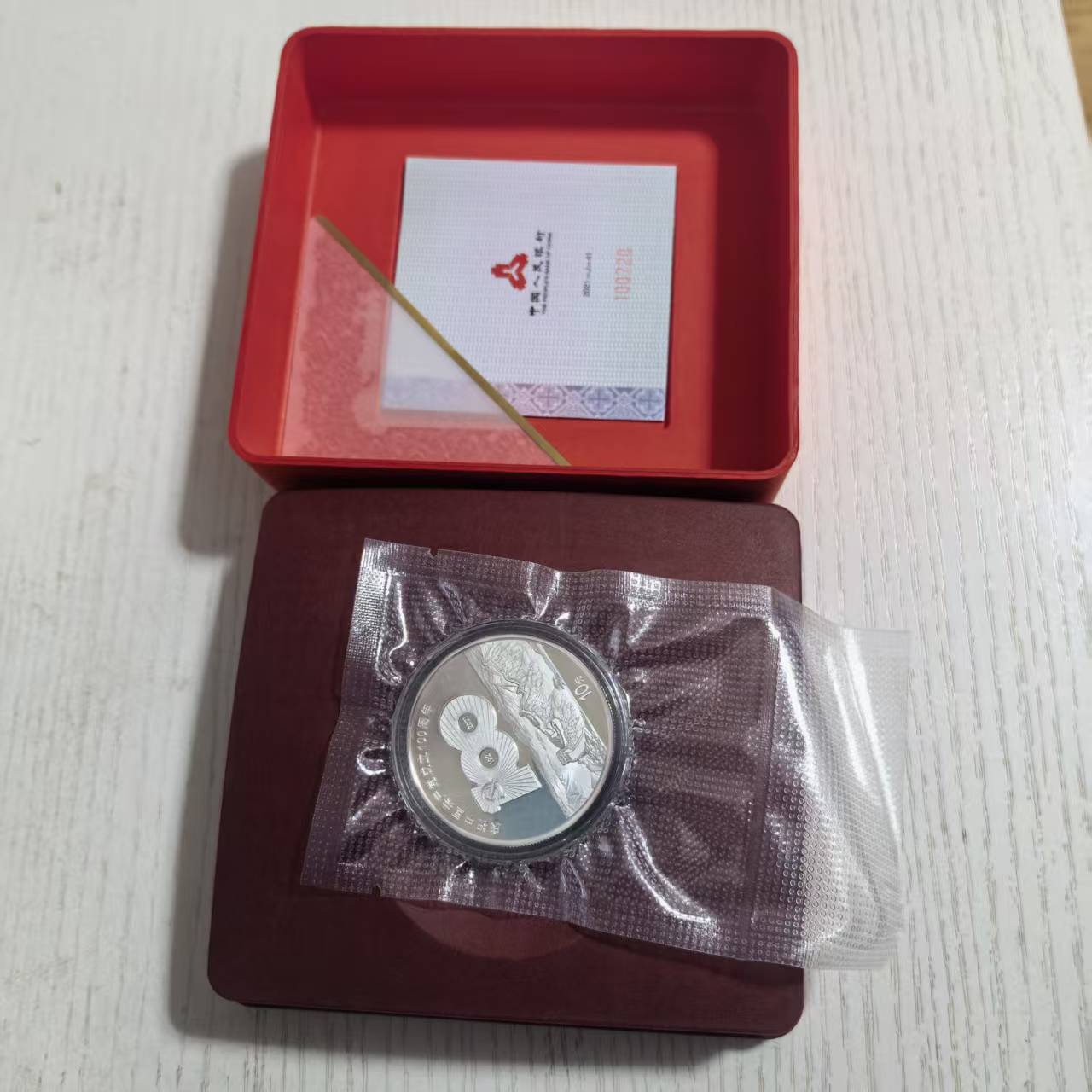 借宝地售一枚建党100周年银币,原盒原证 号码:139678,810元,款到发顺丰,需要微信看图。