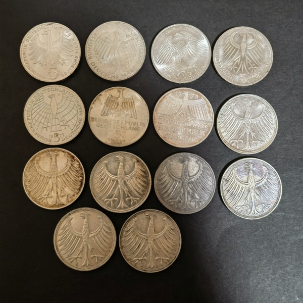 5马克银币14枚,75元/枚,邮费5元,两枚起包邮.