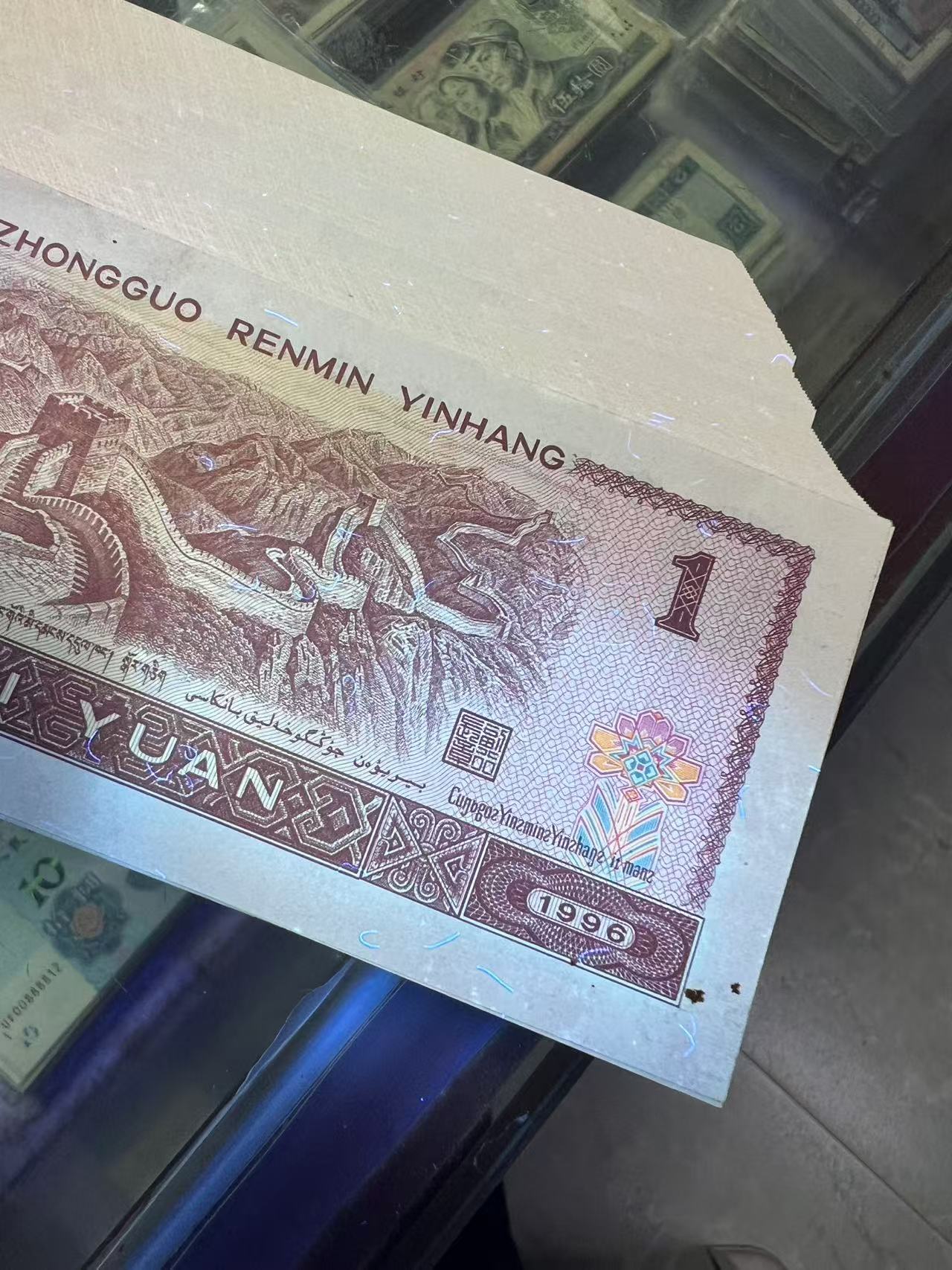 一刀961背金花,五彩金花百连号,全新原票品相肉眼无黄,灯下有微斑,整体品相漂亮,品相如图,售500元,款到包原票百联到手。