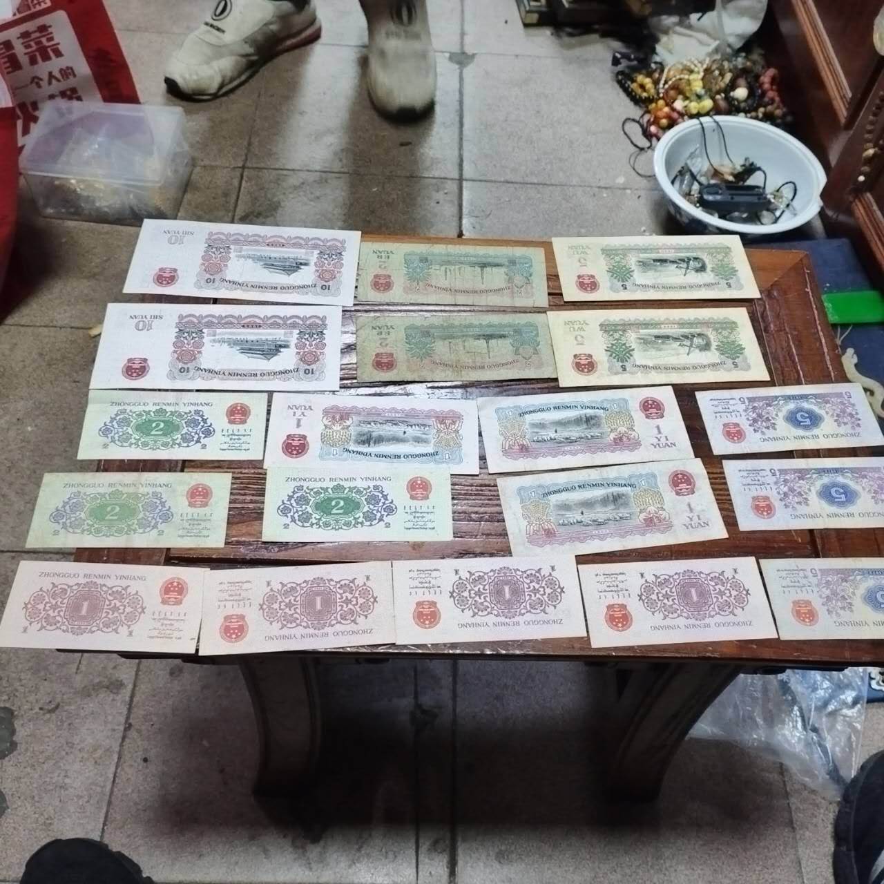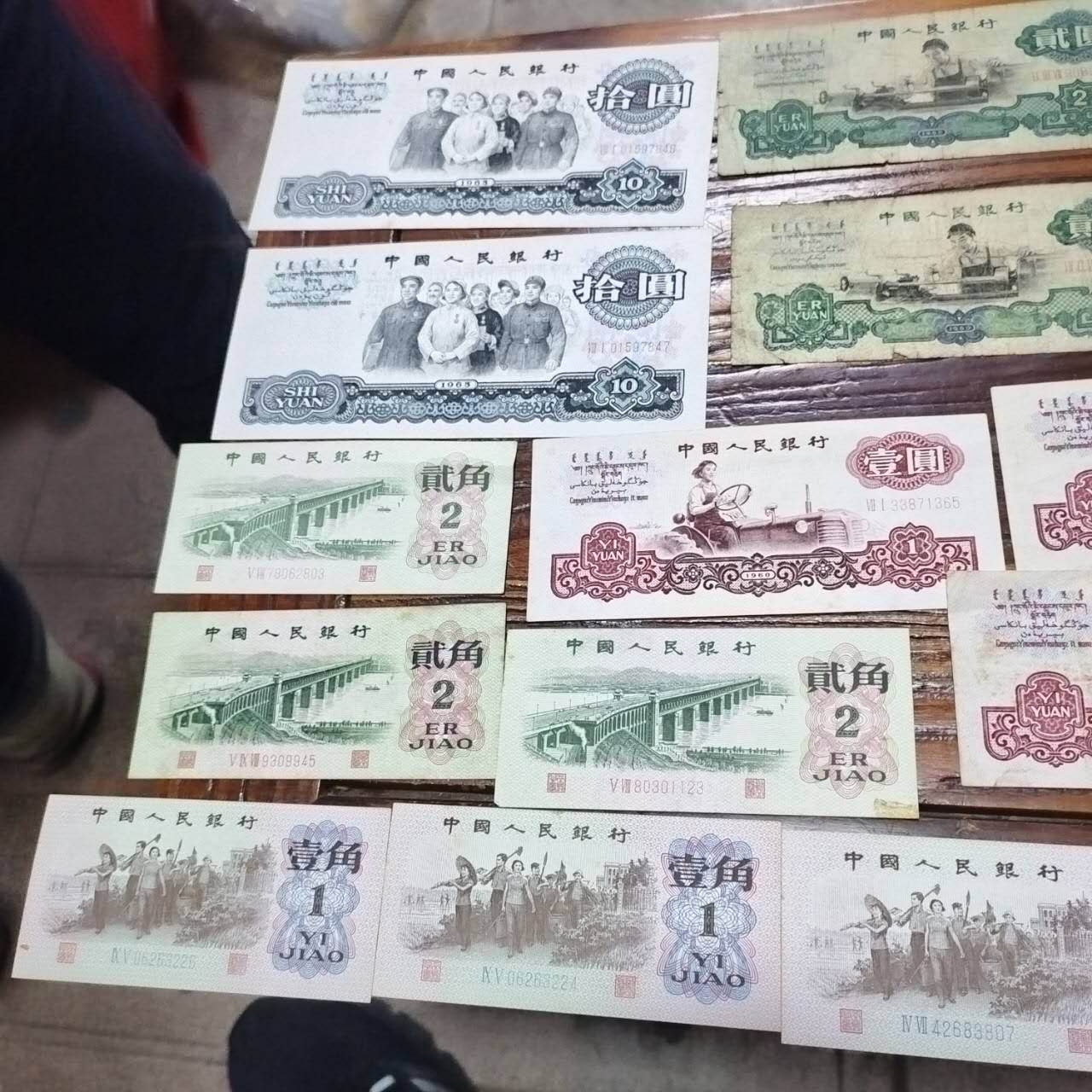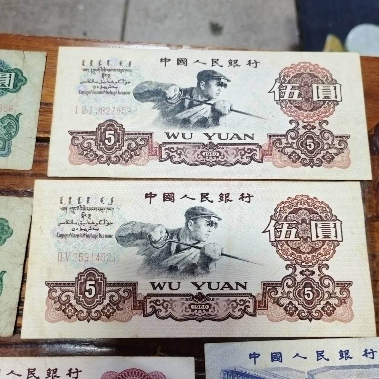 → 车工二张。三版五元二张,一元几张