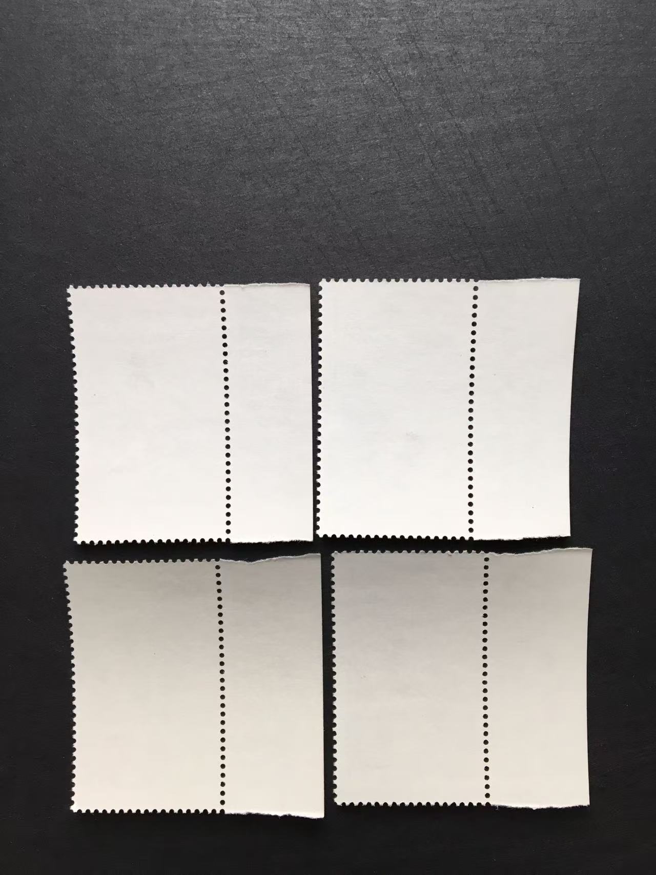 原胶上品、带边纸,其中前3枚顺边且纹样一致。3-2中间有一微小坑,3-4边纸上有3个小黄点,详见放大图