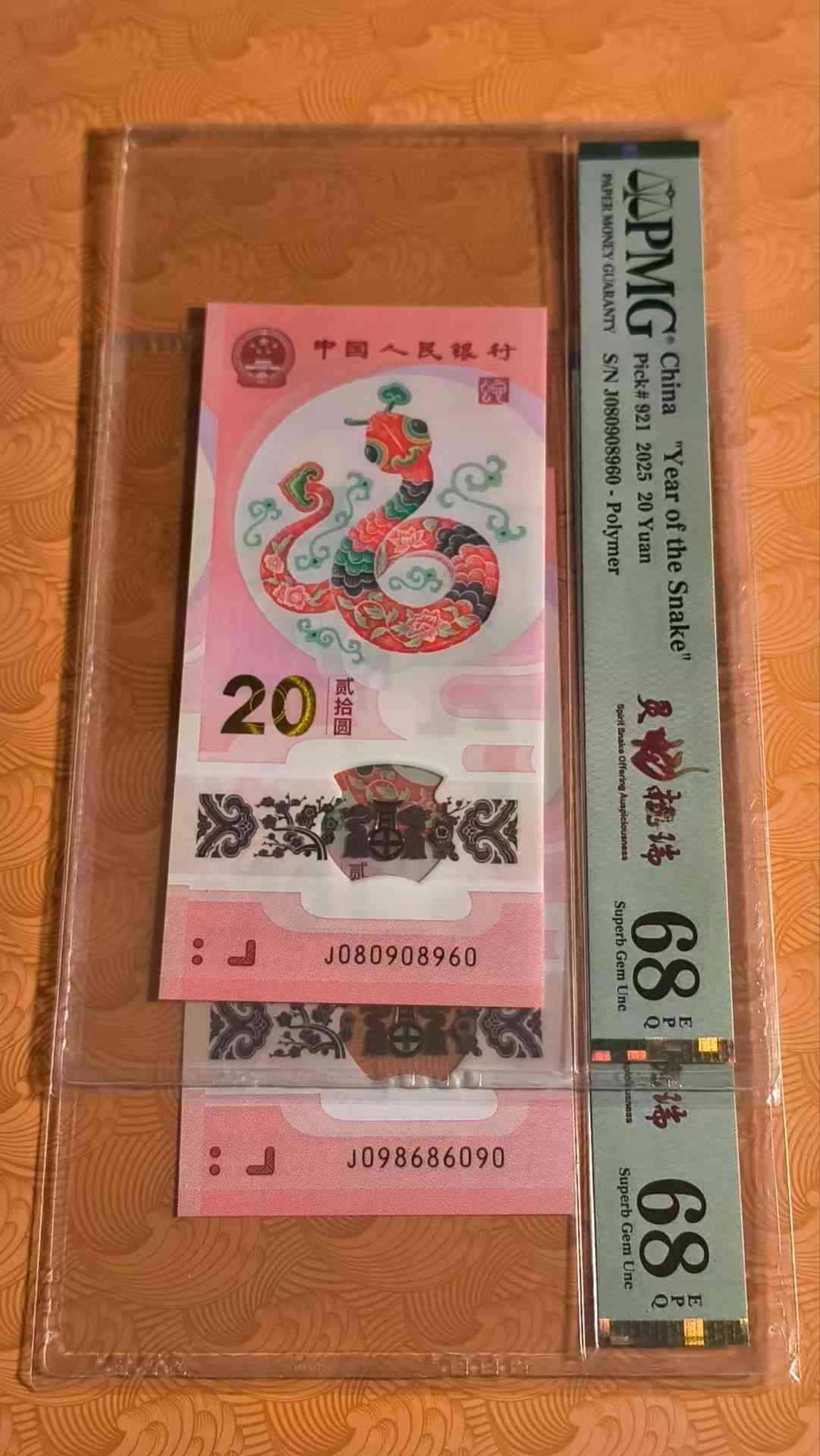 → 1030一张出蛇钞圆圆号pmg68分
