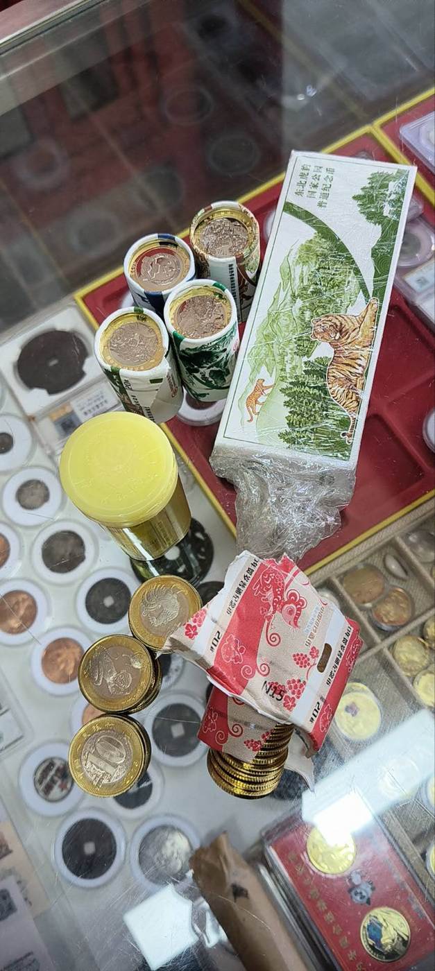 二龙两卷,其中一卷卷头开了,18.8,二虎一卷16,二兔3卷其中一卷有裂13,二牛2卷11,二狗2卷10.2,冬奥1对卷10.5,二鸡一卷面值,黄山峨眉共6卷面值,虎豹三江源熊猫面值1800的加10元,武夷山18枚,二猴鸡散29枚面值